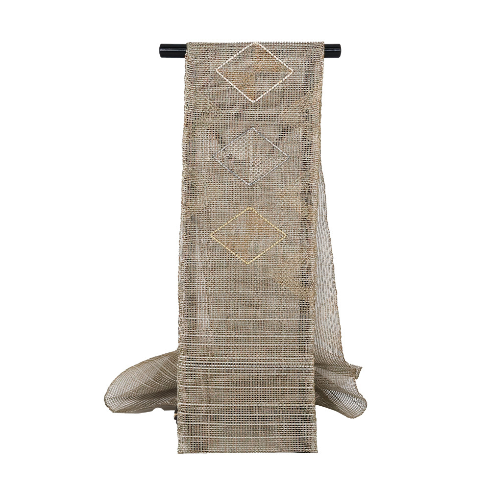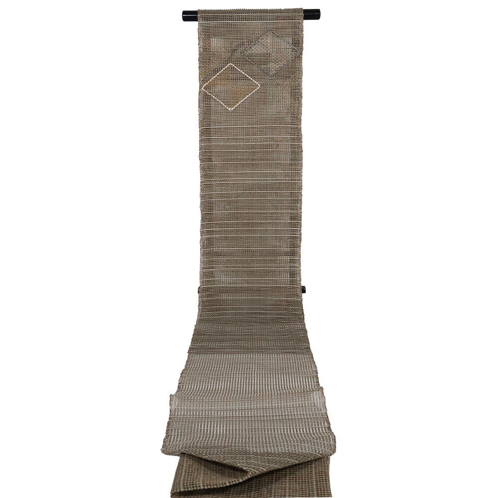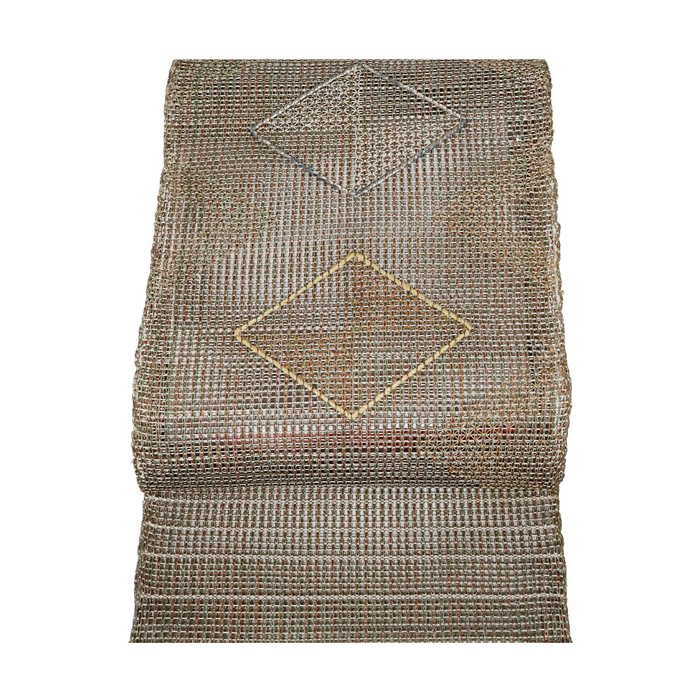 | 羅 名古屋帯 緑地 刺繍・幾何模様・菱文 未使用品 仕立て上がり | |