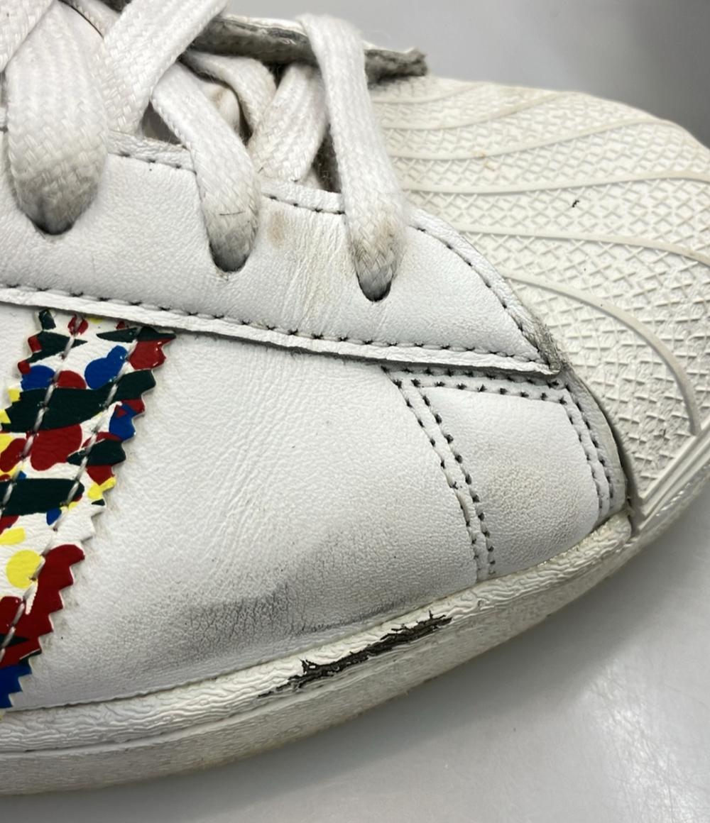 表面:シワ スレ 汚れ シューレース:毛羽立ち 汚れ 履き口 内側 ミッドソール タン:スレ 汚れ インソール:スレ 汚れ 浮き アウトソール:汚れ すり減り |