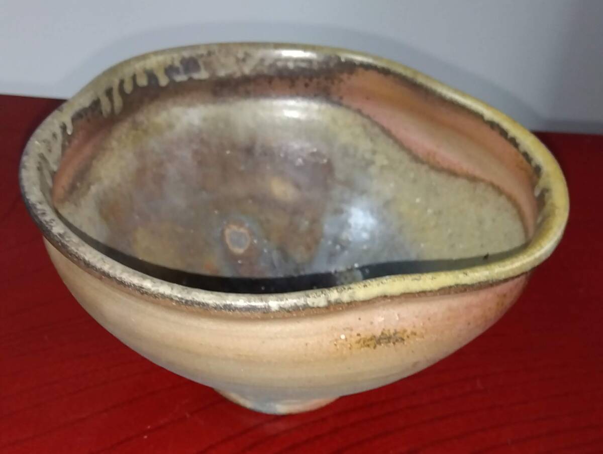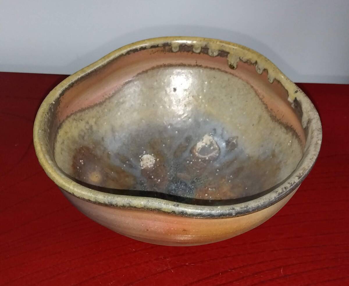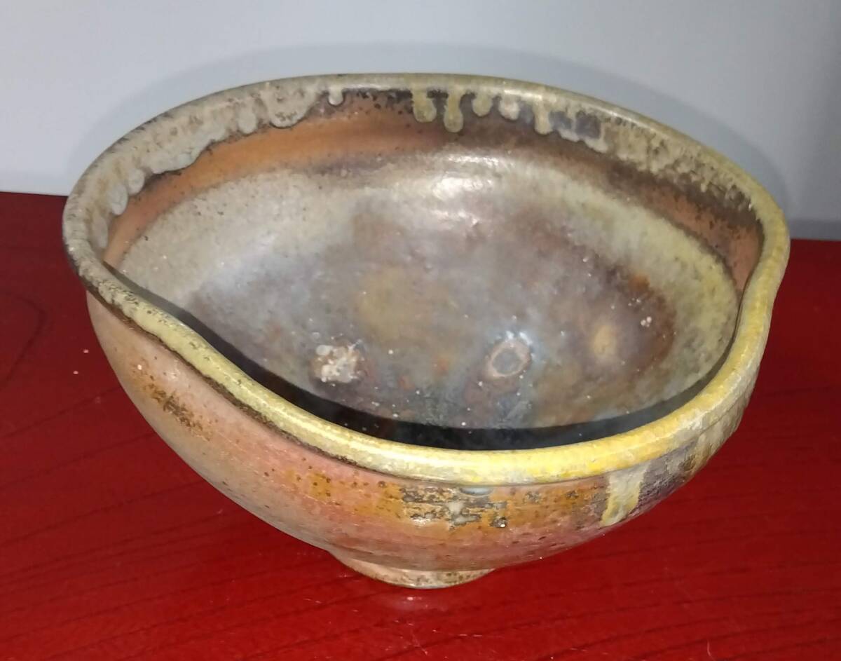 越前焼の名工 白越不朝(塩越窯)自然灰釉の究極美が迸る逸品灰釉美中鉢 No:3 10MM程のぽってりと厚い「玉縁」全面に降り注いだ自然灰釉は見込み全面にも降り注ぎ約68MMの見込み深さのどっしり安定感のある中鉢に仕上がっています。ぽってりと厚い「口作り」全面に降り注いだ自然灰釉は見込み全面にも降り注ぎ鉢を躍動感溢れる太くてどっしり安定感のある60mm径の高台12mm高台畳が支える中鉢に仕上がっています。 自然灰釉が夜空に輝く天空の天の川の時空を超えた悠久の流れの如く四方の玉縁から流れ込み 越前焼独特の「ねじ立て」「輪積み形成」「はがたな伸ばし」そして「しのぎ」と豪快な面取りの伝統技法を駆使した越前大壺を思わせるどっしりとした重量感/躍動美/風趣が溢れる胴体は還元炎の輪廻の色彩に覆いつくされています。 質素ながら極めて奥深い風合い 無限の幽玄美/崇高美おも感じさせる心和む自然灰釉美は極上の至福のひと時をもたらしてくれます。 穴釜陶芸美に全霊を捧げられている白越不朝師が亘ずね感謝されている薪と炎の神様がもたらしてくれた逸品です。 師の「至高の技」が心和む「究極窯変美」に焼き上がり、器に浮き出る自然灰釉美は越前焼魅力の世界を再確認させてくれます。 越前陶土「青ねば・赤べと・太古土」を活かす形で作られ、越前(陶土)が表す独特の質感 温かみのある土色に自然灰釉が組み合わさった魅力的な作品です。 質素ながら極めて奥深い風合い 無限の幽玄美/崇高美おも感じさせる心和む自然灰釉美 技巧的表現をも還元焼成させる際立つ(陶土)が表す独特の質感 薪と炎の神様が生み出した偶然の景色を楽しんで下さい。 サイズ中鉢 No:3 長口径155㎜短口径125mm 胴高83/87mm見込み深68mm高台13mmX57mm 包装:クラフトボックスプチプチ包装