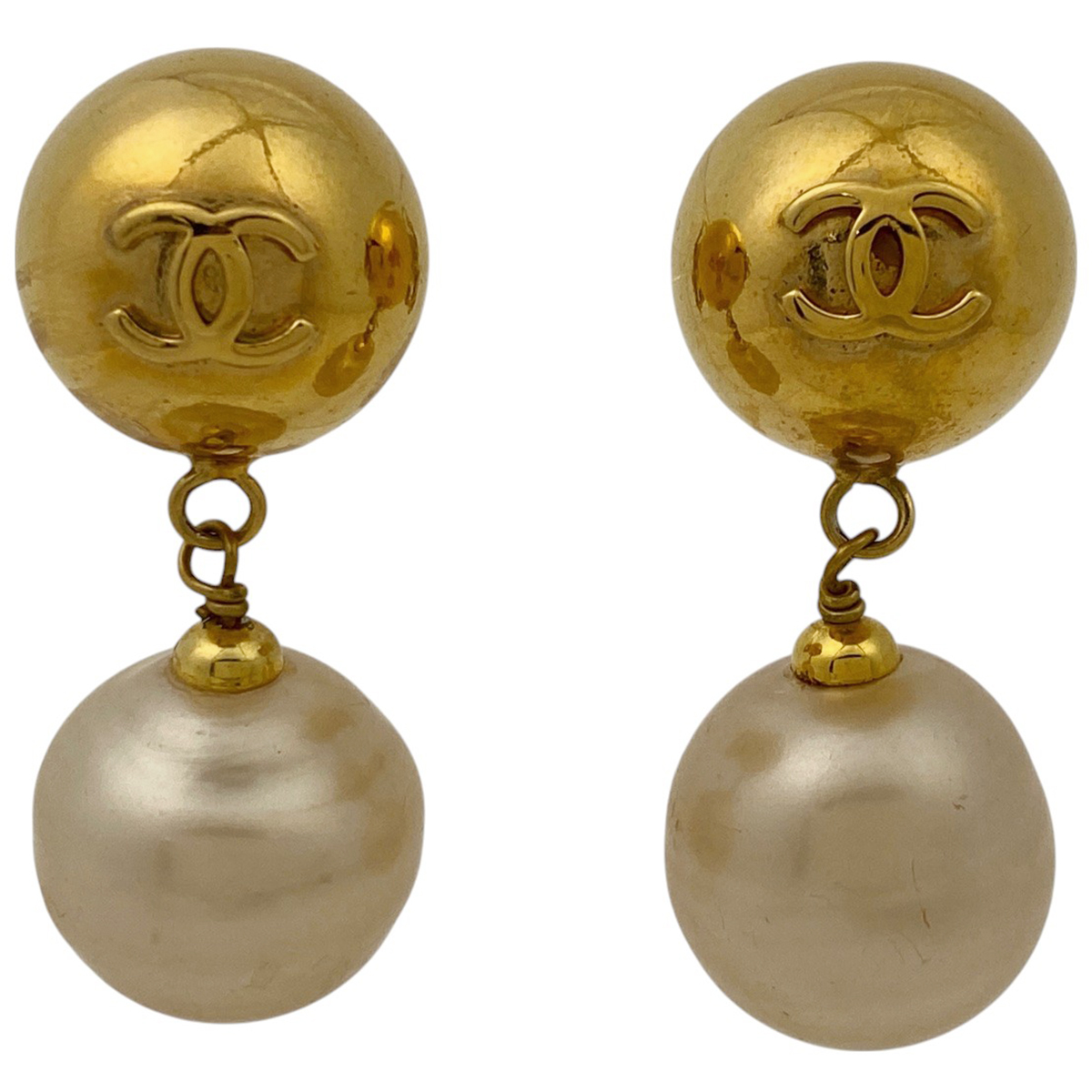 | シャネル CHANEL ココマーク フェイクパール イヤリング CCマーク スイング イヤリング GP ゴールド ホワイト レディース 【中古】 |