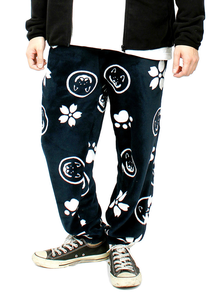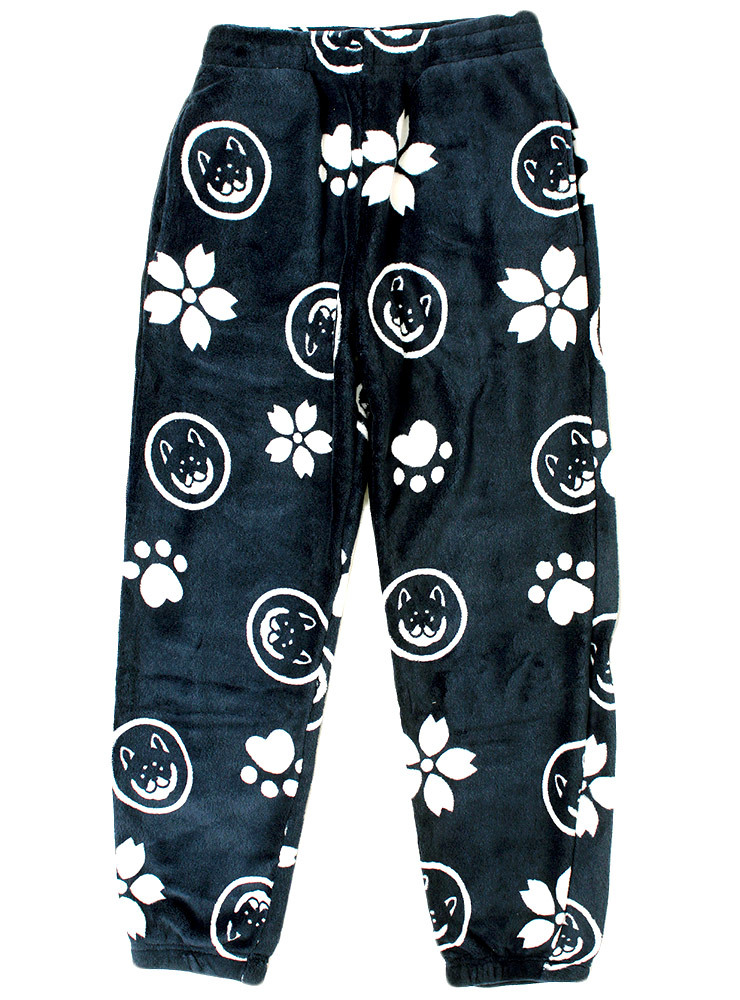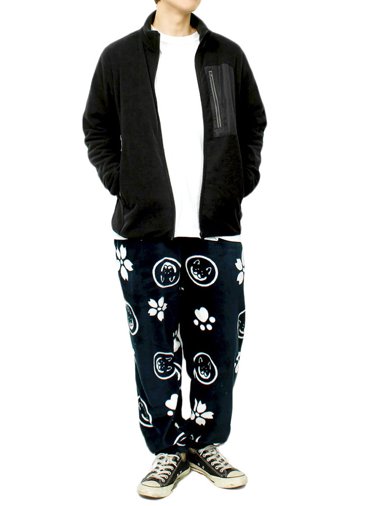商品名 | 【新品】 3L 総柄ネイビー 和んこ堂 もこもこ ボア フリースパンツ メンズ 大きいサイズ 京都発祥 ゆるキャラ プリント わんこ堂 イージーパンツ |