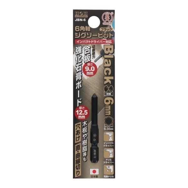 【クリックポスト・メール便 送料無料】●木板や樹脂等も穴あけ、直・曲線切り! H&H 6角軸ジグソービットBlack 4mm JBN-4