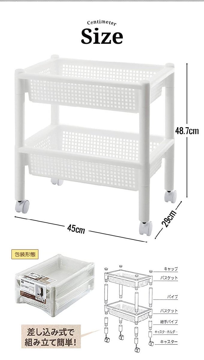 | キャスター付きワゴン ラック 45 テーブル下 クローゼット 押し入れ かばん 鞄 置き 小物 収納 隙間 すきま すき間 収納 家具 棚 デスク下 デスク テーブル 下 衣類 服 洋服 パイプハンガーワゴン ホワイト カゴ 収納 ハンガーラック 隙間 クローゼット 空間利用 デッドスペース バスケット テーブル下 デスク下 軽い 移動がラク |