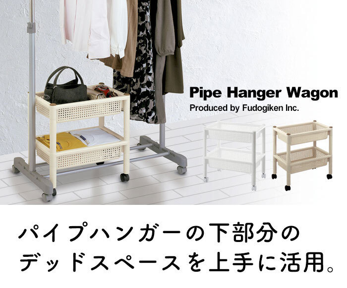 | パイプハンガーの下部分のデットスペースを上手に活用。 縦置きでも横置きでもお使いいただけます。 ※パイプハンガーは付属しておりません。 |