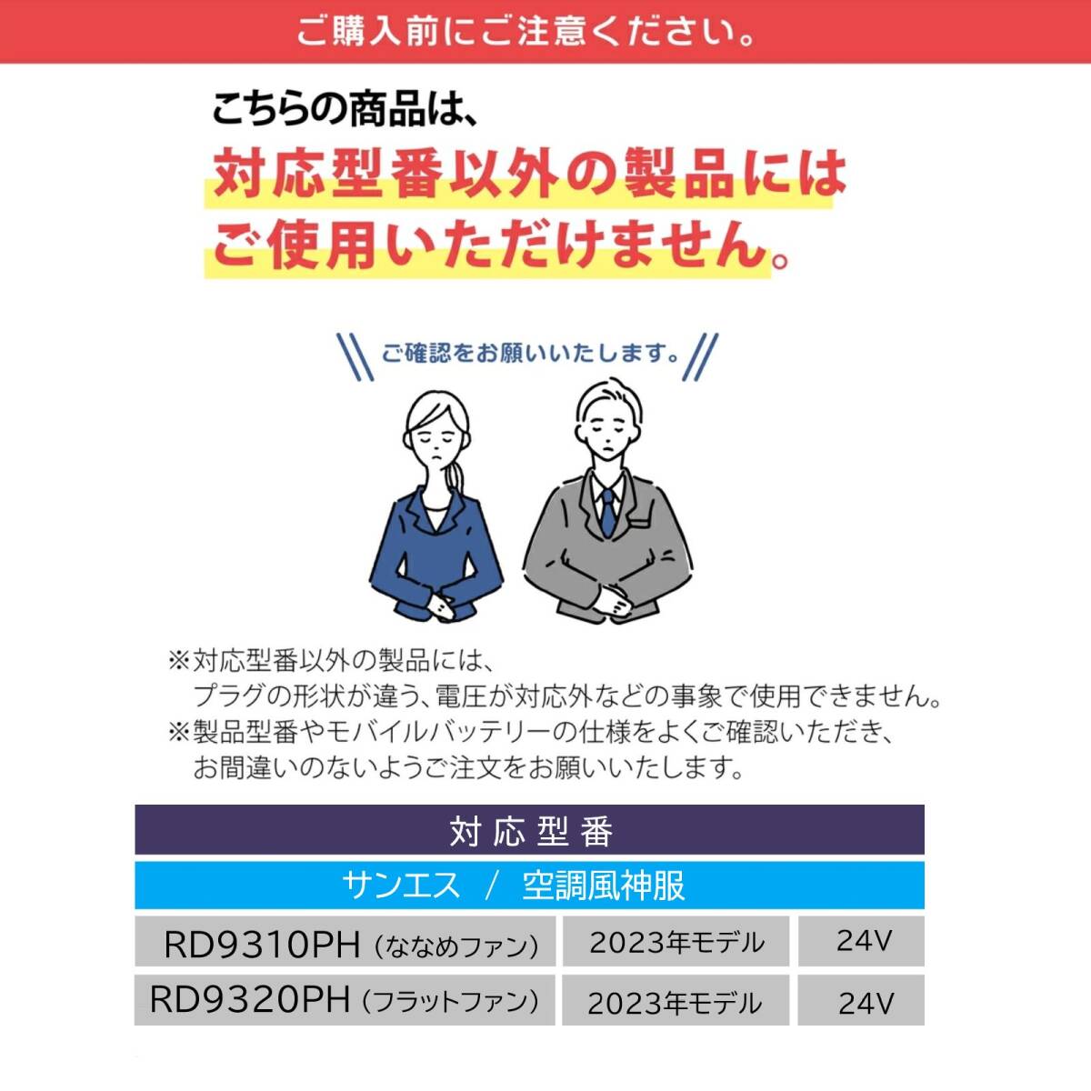 適合ファン:空調風神服 2023年発売 24Vファン RD9310PH