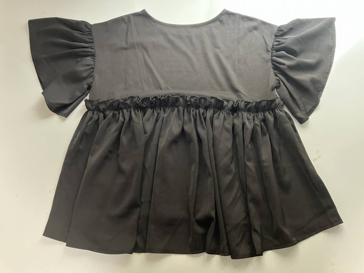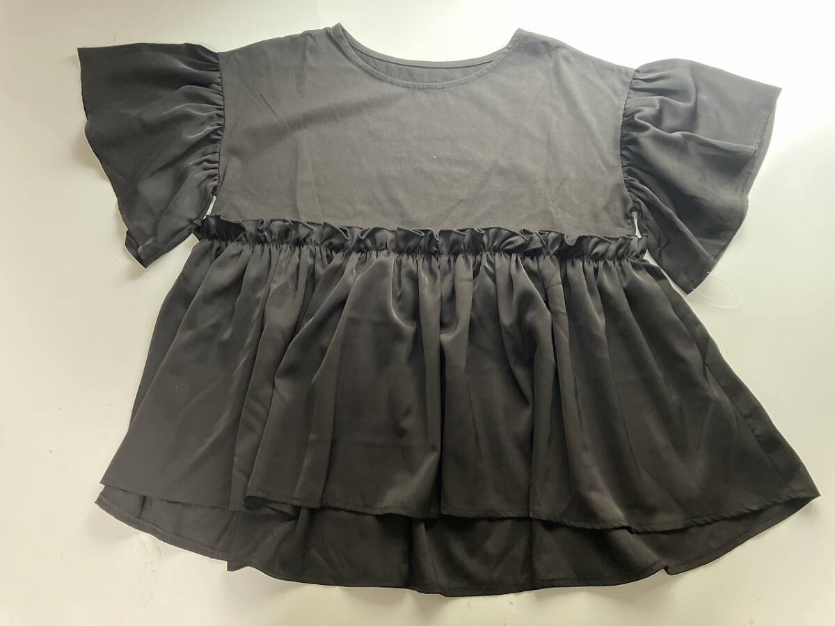 訳あり■大きいサイズLL■異素材組み合わせ切替ギャザートップス■