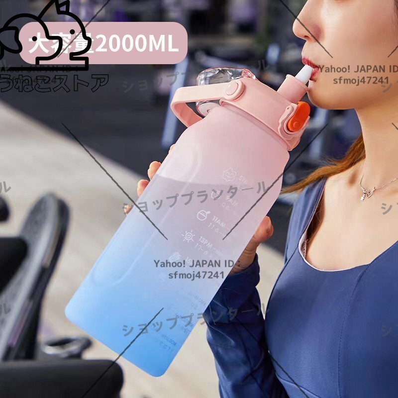 ウォーターボトル 水筒 ストロー 直飲み 大容量 タイムマーカー かわいい 洗いやすい スポーツボトル 運動水筒 2000 ml