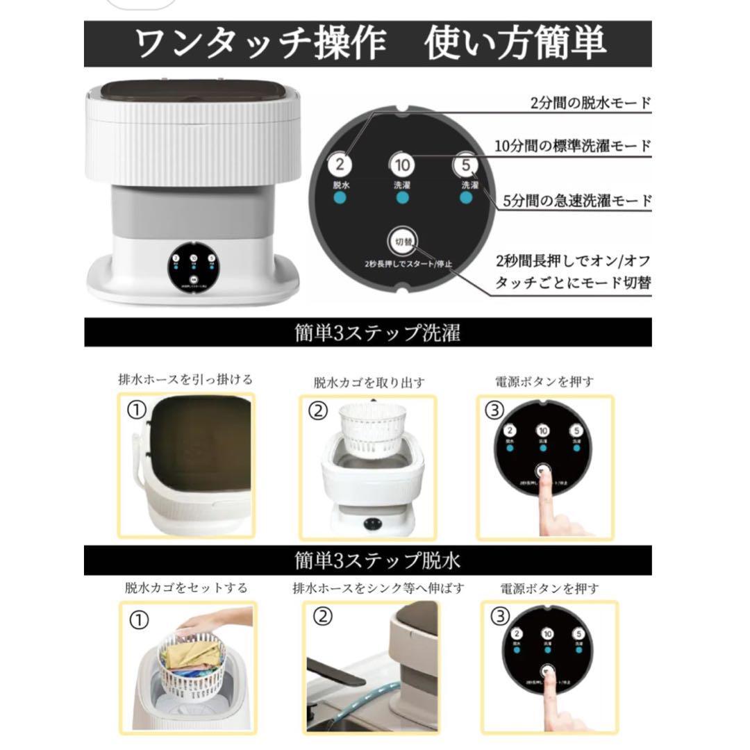 【洗濯・脱水一体化】この小型洗濯機は、二つの洗濯モードがあります。「5分間の急速洗濯モード」と「10分間の標準洗濯モード」を選ぶことができます。また2分間の急速脱水機能を搭載しており、最大85%の乾燥効果を実現することができます。排水ホースを本体に収納しておりますので、伸ばすだけで、簡単に排水できます。ご注意:脱水する場合は、付属の脱水カゴをセットして使用してください。洗濯の際は、脱水カゴを本体に入れないでください。