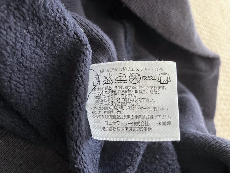 サラ リー社の頃らしいシルエッのタイプで、現行品のヘインズ製よりもアームホールが太めでソデやスソのリブが長め。お腹のポケットは大きめで、しっかりと肉厚です