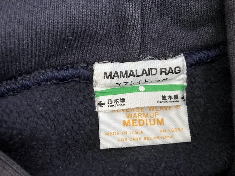 即決 サラリー社製 復刻 金タグ 別注品 Champion REVERSE WEAVE プルオーバー パーカー Mサイズ ネイビー ポケット大きめ MAMALAID RAG