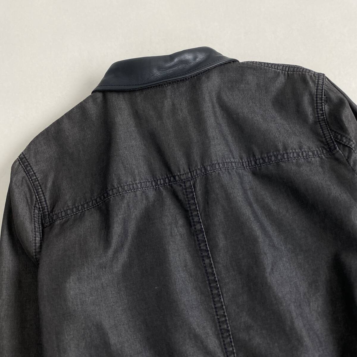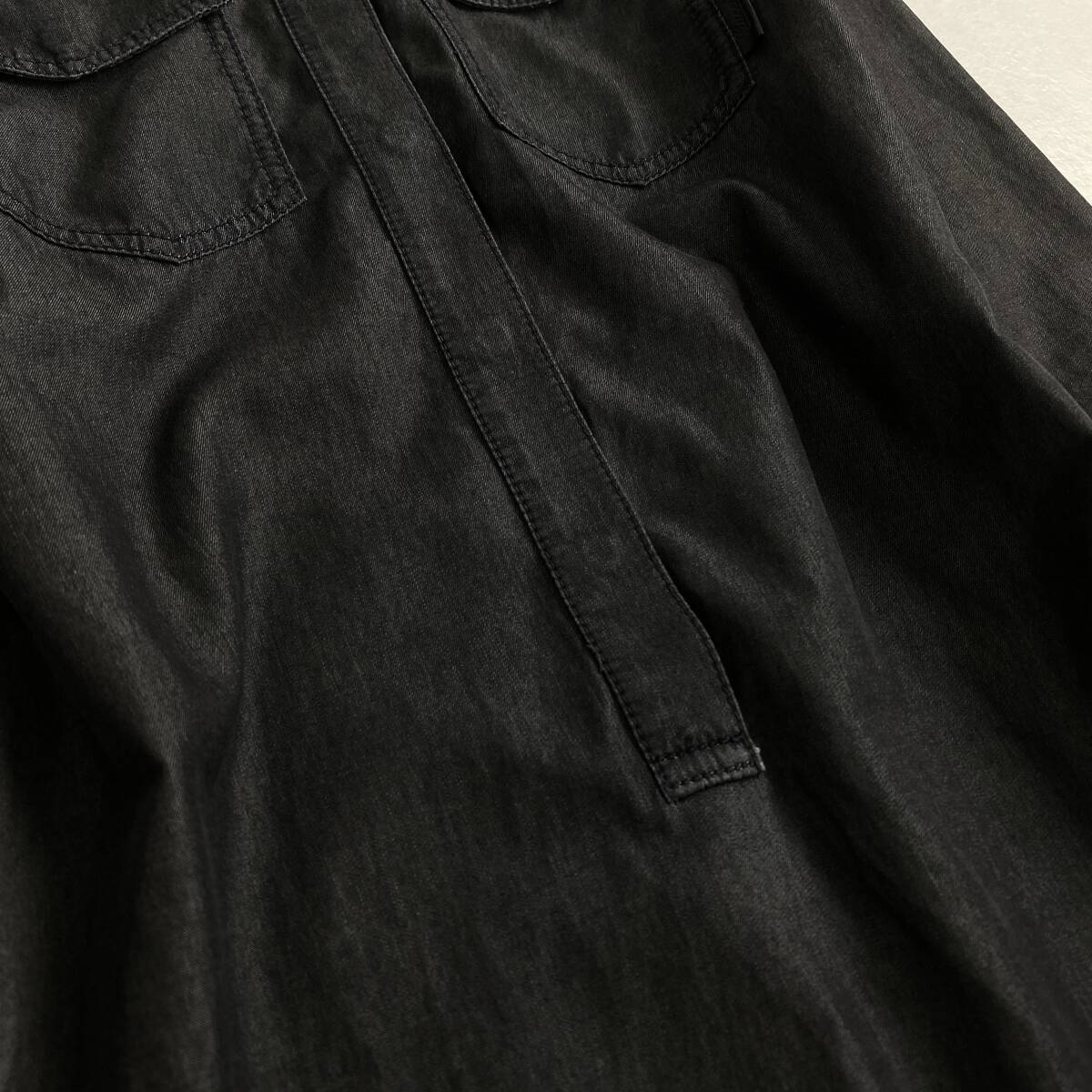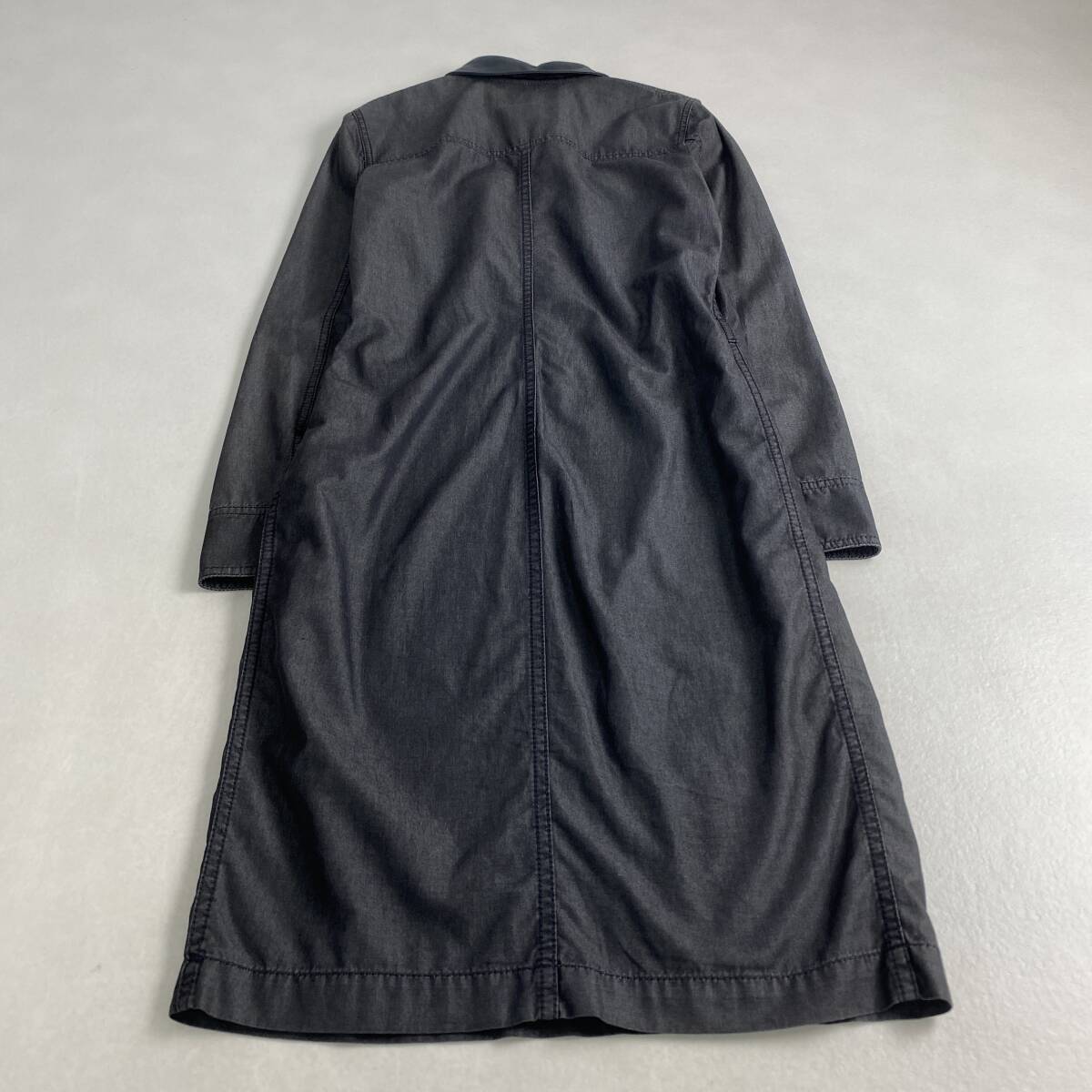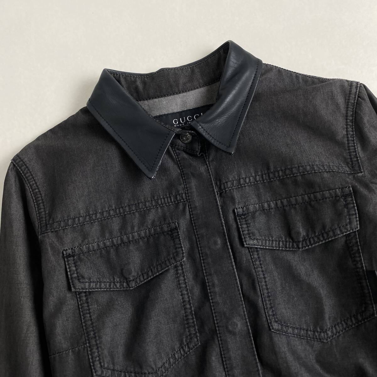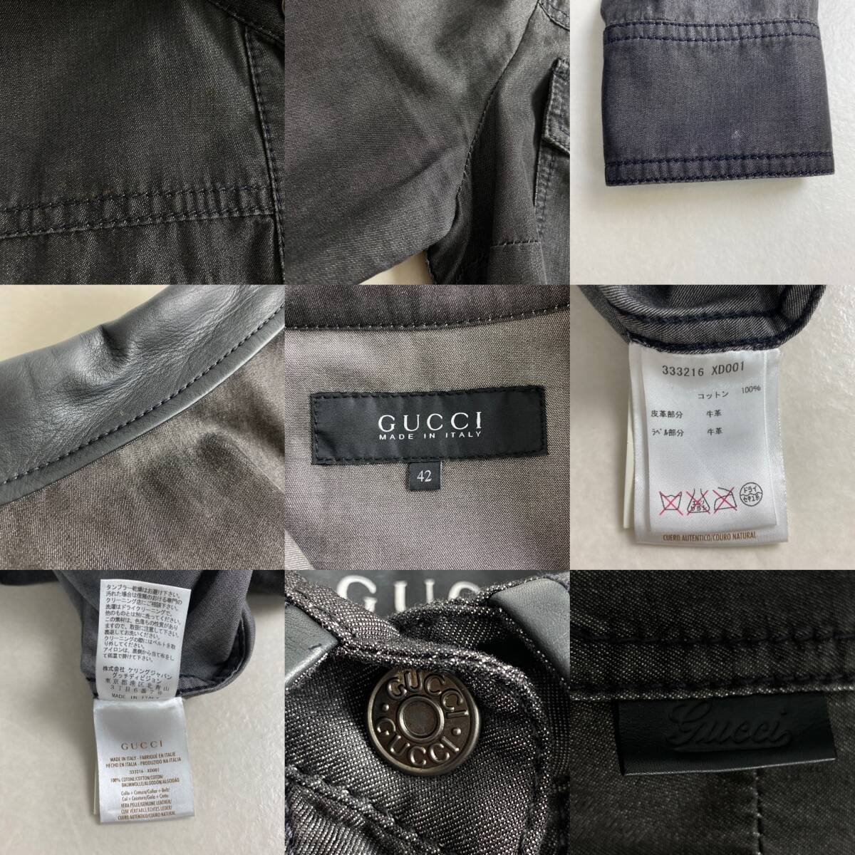 【ポイント】高級 GUCCI グッチ レザー切り替え シャンブレーデニム ワンピース ドレス カジュアル ブラック系 レディース 42size M L相当