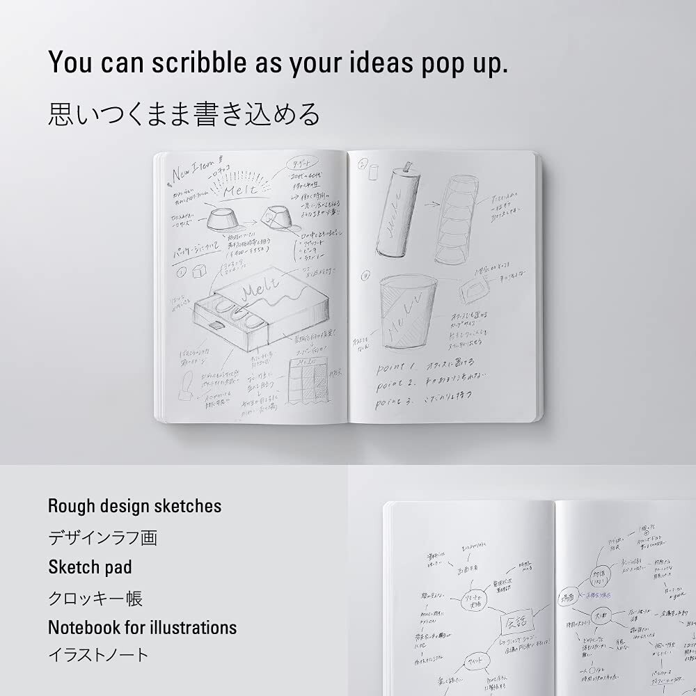 「商品情報」日付欄などもすべて取り除き、何よりも「自由度の高さ」を優先した無地のノートは、幅広いシーンで活用するアイテムです。思いつくまま書き込む自由帳やクロッキー帳として、図や絵も記入するアイデア帳として、あなただけの一冊にしてください。「主な仕様」【サイズ】A5(148mm × 210mm)【内容】無地【カラー】ブラック【中紙】96枚【重さ】190g