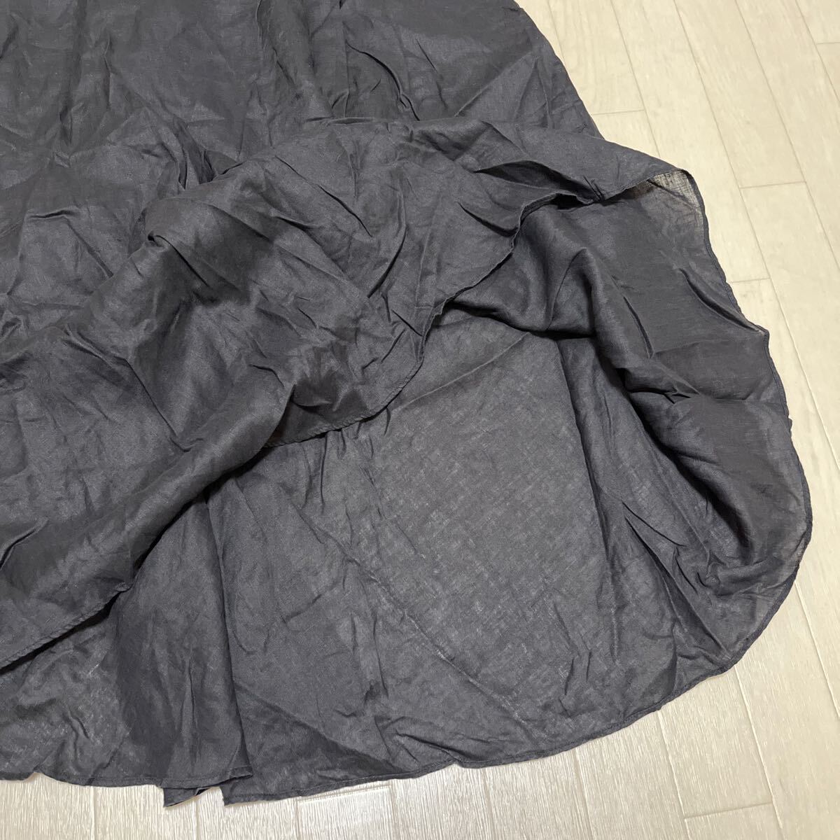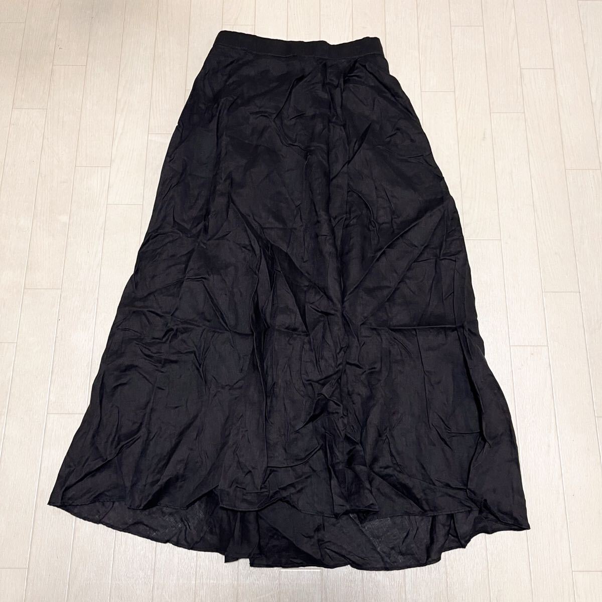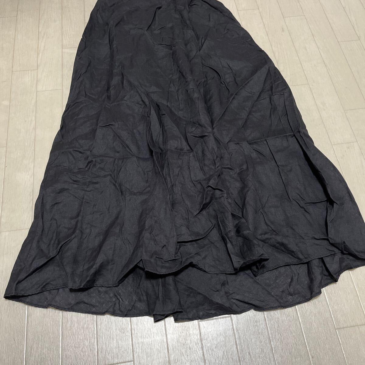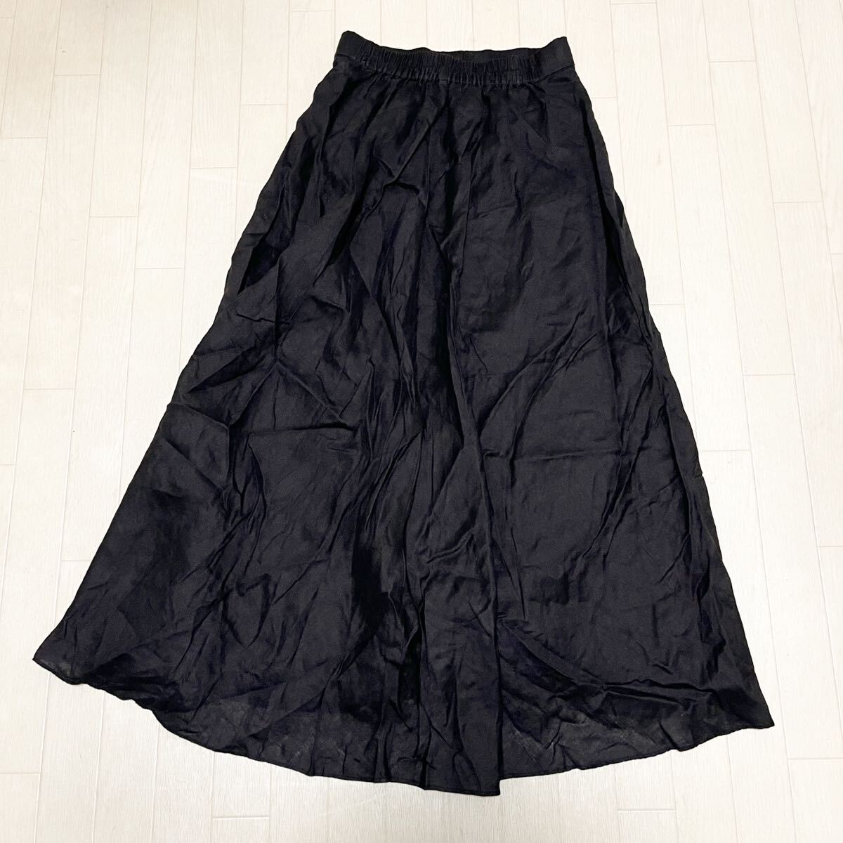 和764★ BEAUTY&YOUTH UNITED ARROWS ビューティ&ユース フレアスカート ロングスカート リネンスカート カジュアル ブラック レディース