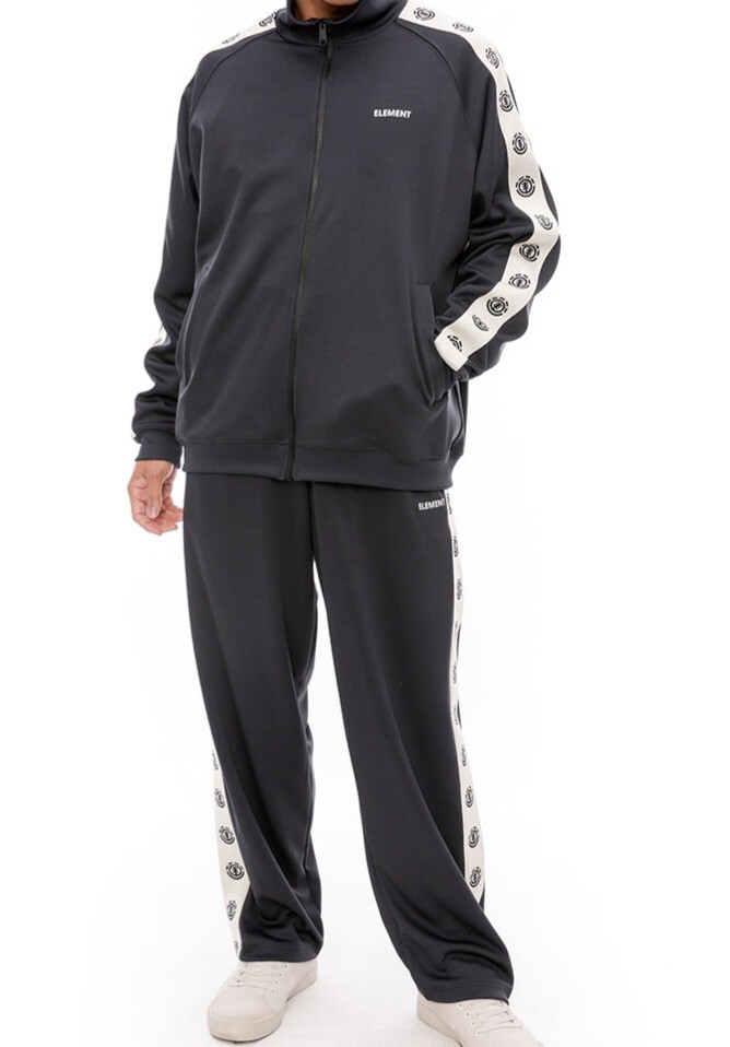 スリーブの織りテープにELEMENTのツリーロゴを施したトラックジャケット。左胸にELEMENTロゴを刺繍でデザインし、サイドポケットを装備。身幅が広く、肩を落としたBIG FITのシルエットを採用。同素材、同デザインのトラックパンツとSETUPとしての着用も可能です。(モデル着用サイズ:L)