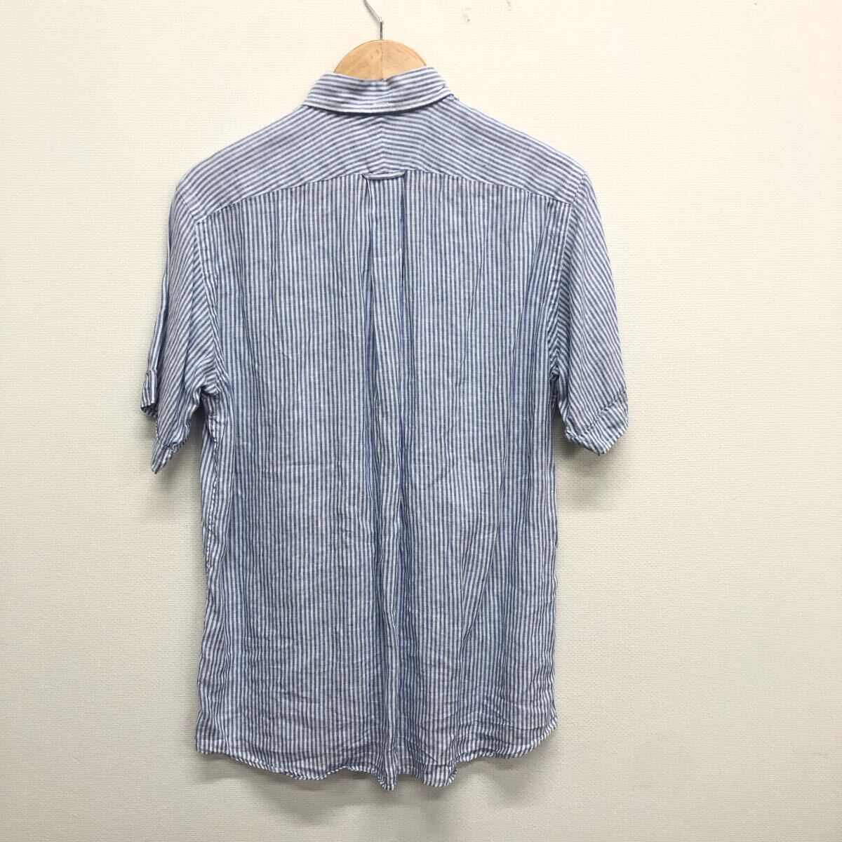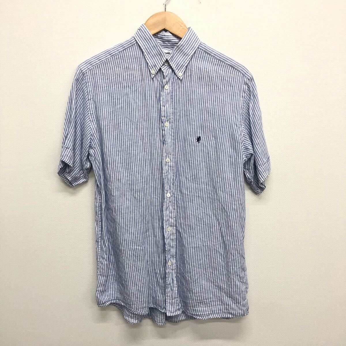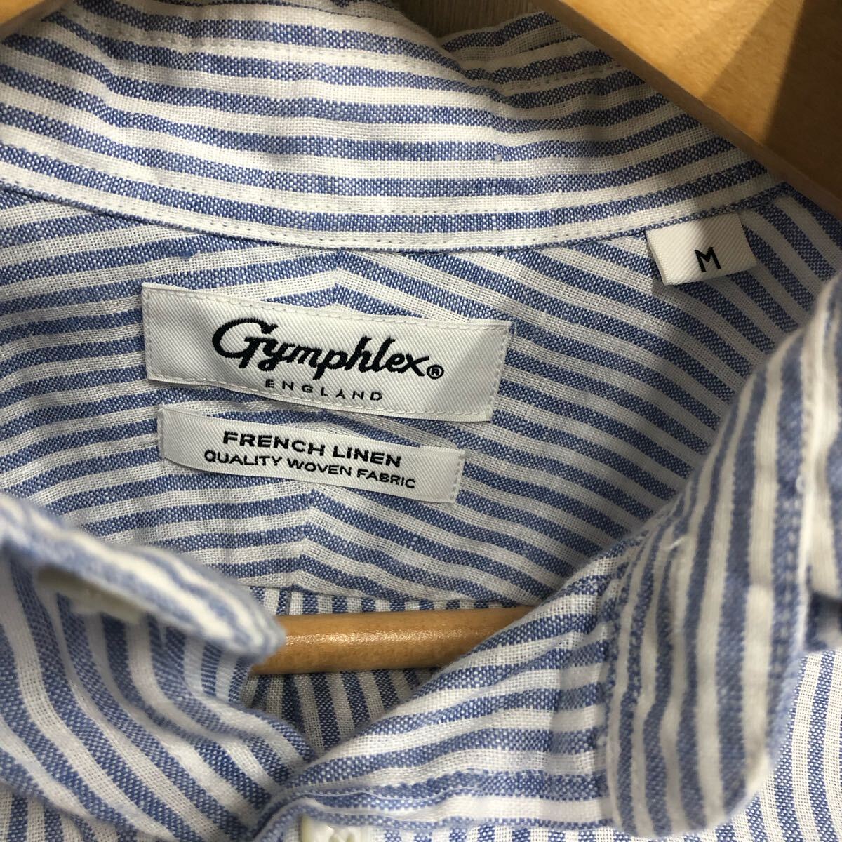 【Gymphlex】ジムフレックス★半袖シャツ サイズM リネン ブルー ストライプ gy-b0244 ボタンダウン シャツ BA
