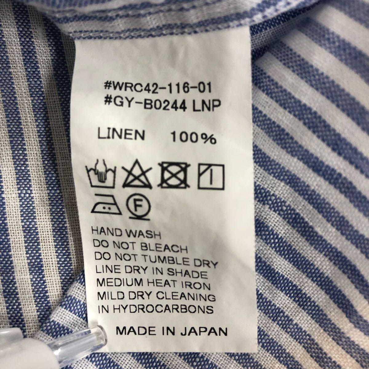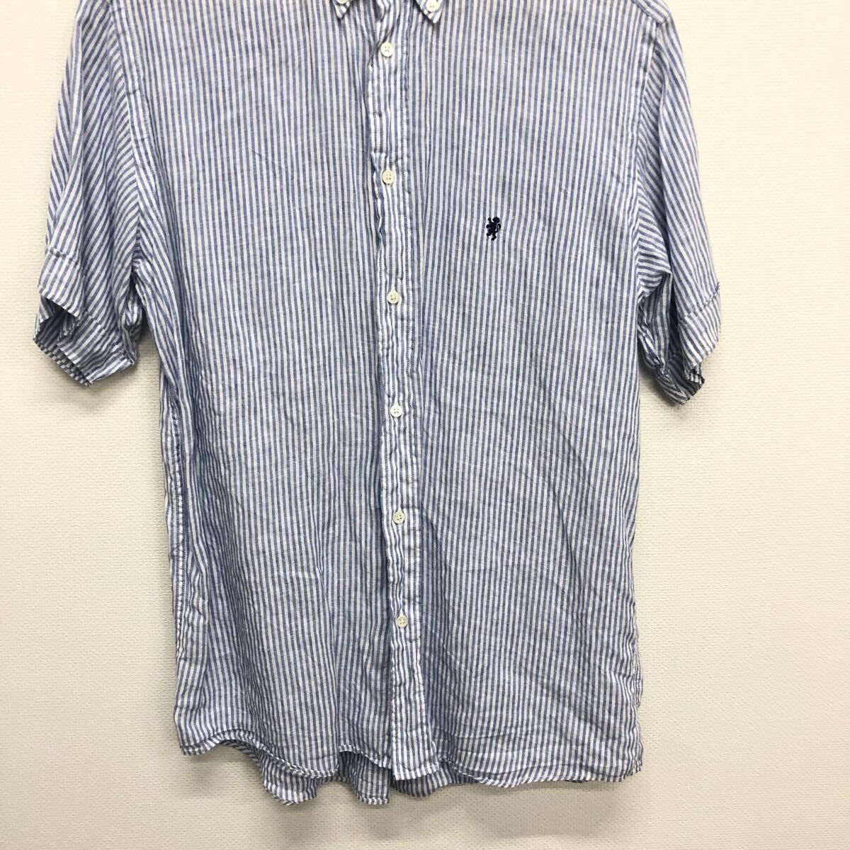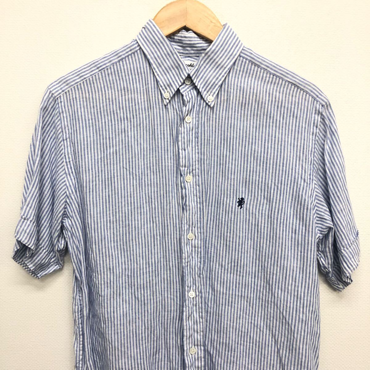 【Gymphlex】ジムフレックス★半袖シャツ サイズM リネン ブルー ストライプ gy-b0244 ボタンダウン シャツ BA