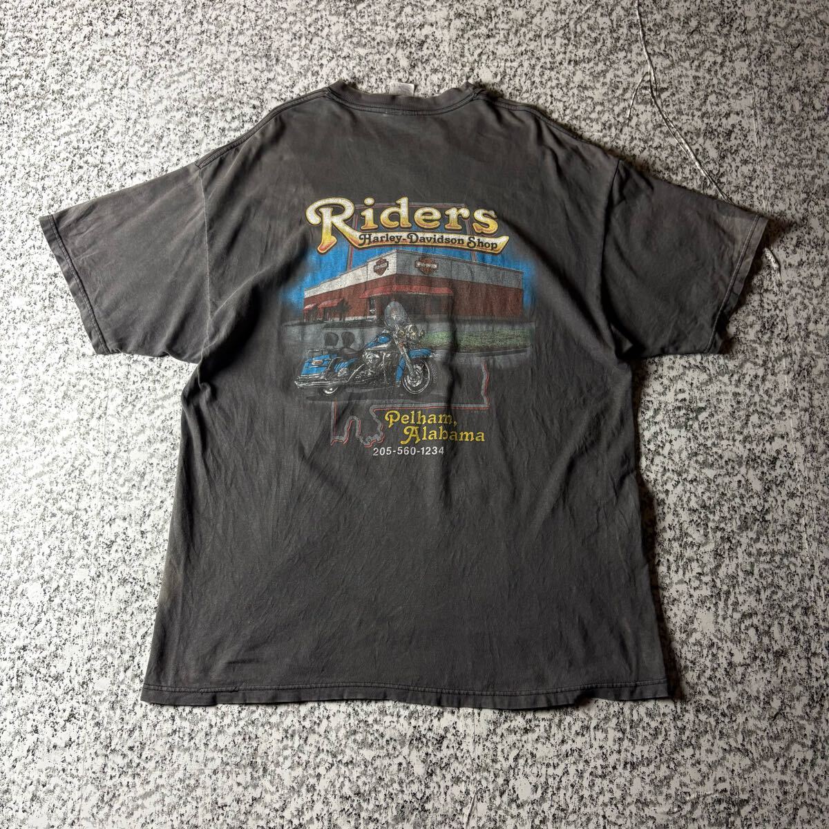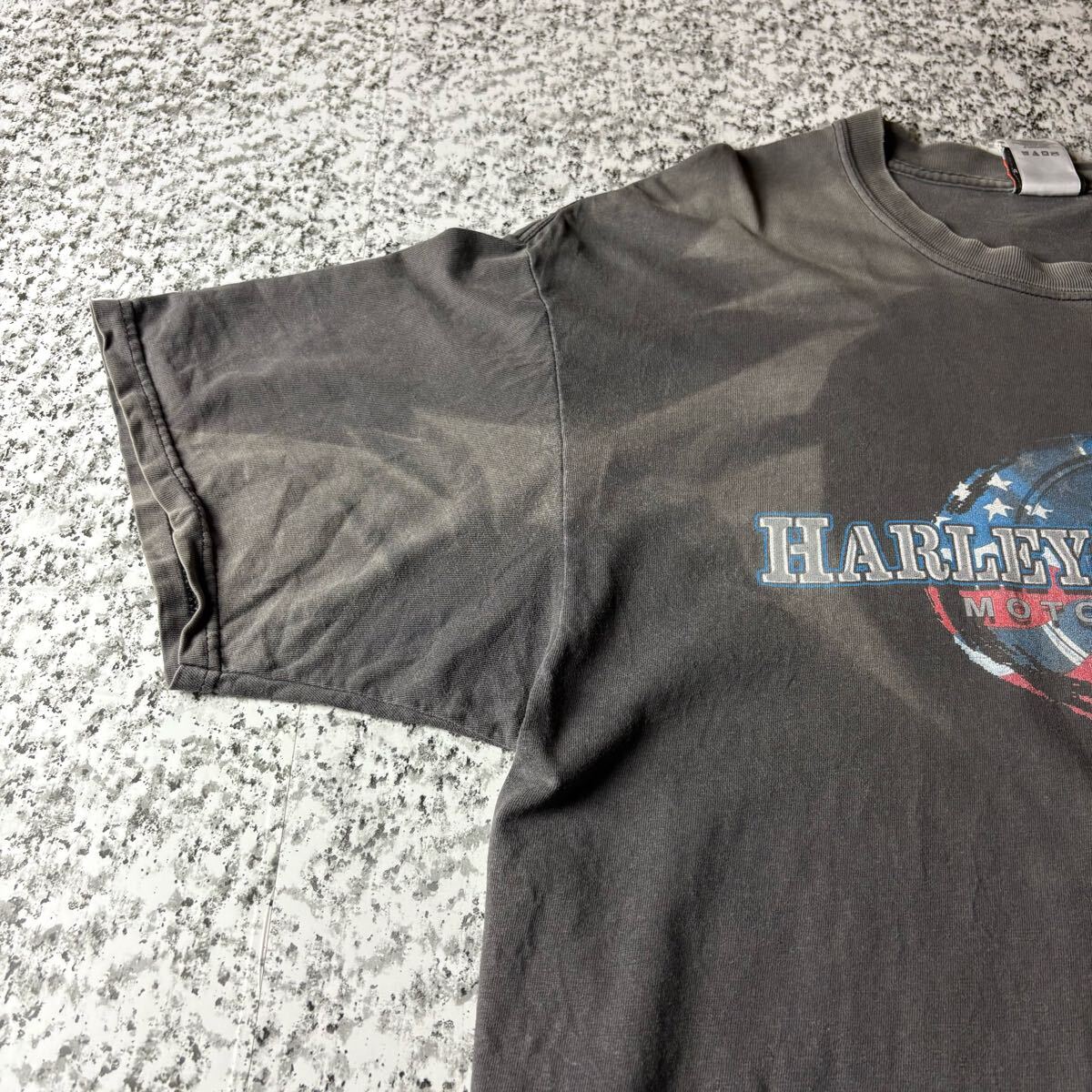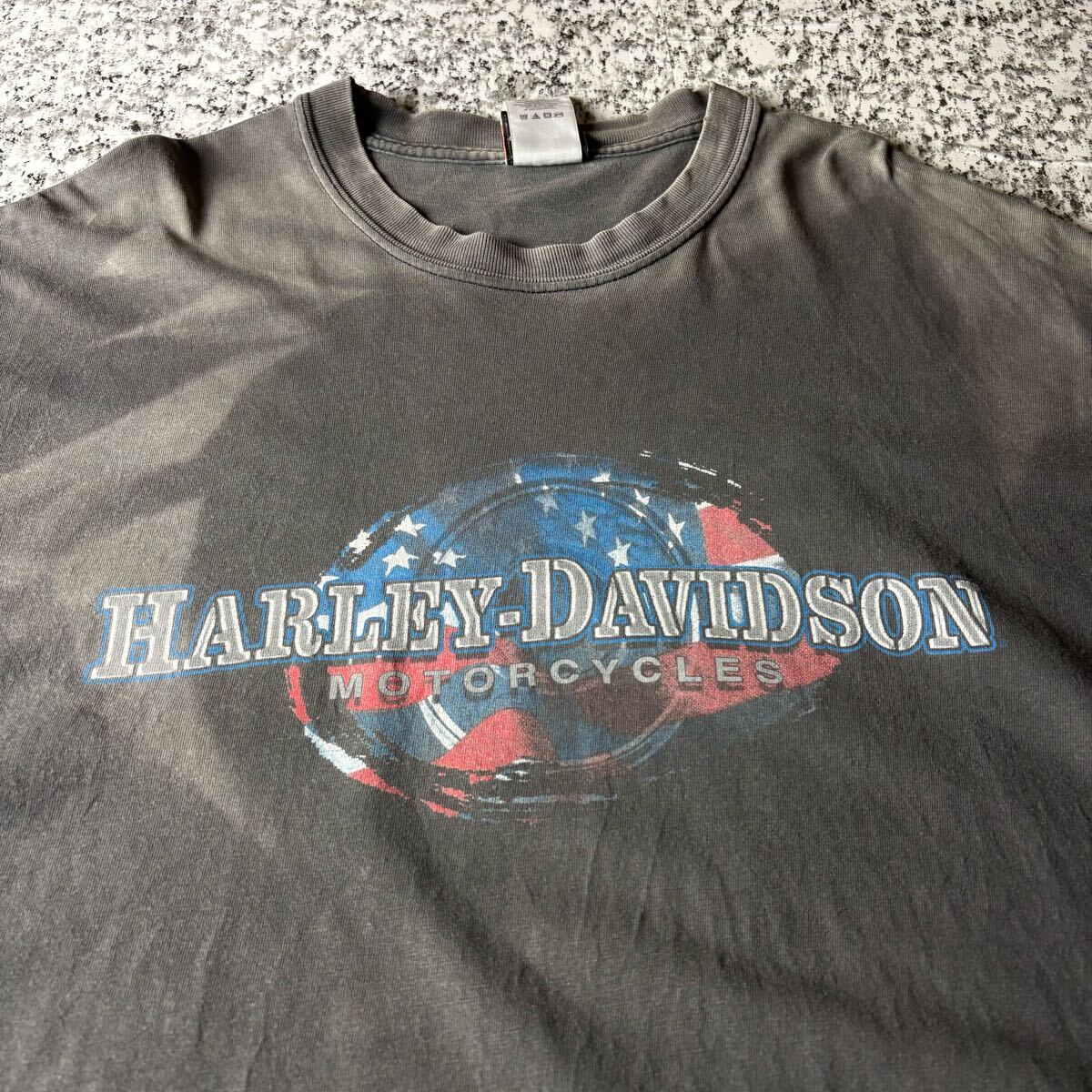 【00s鬼フェード】ハーレーダビッドソン スミ黒 サンフェードTシャツ USA製 チャーコールグレー XLサイズ 古着 雰囲気抜群