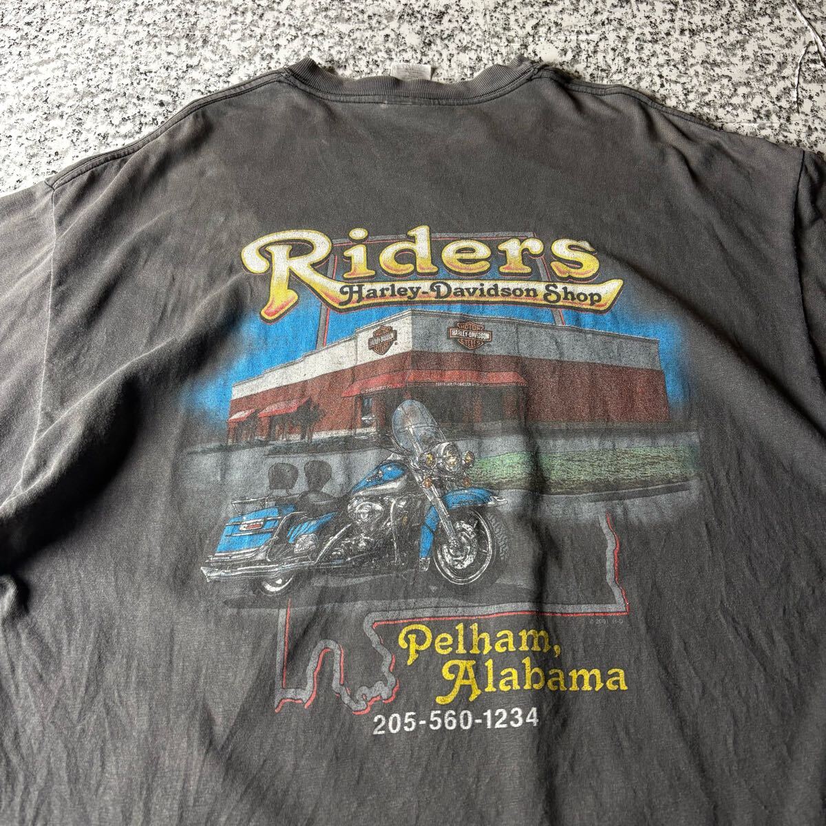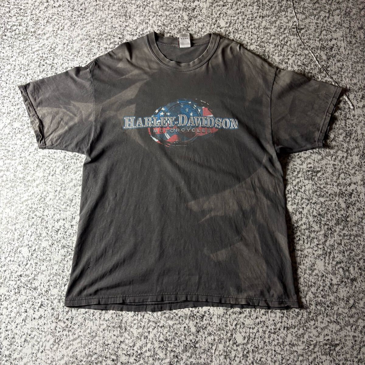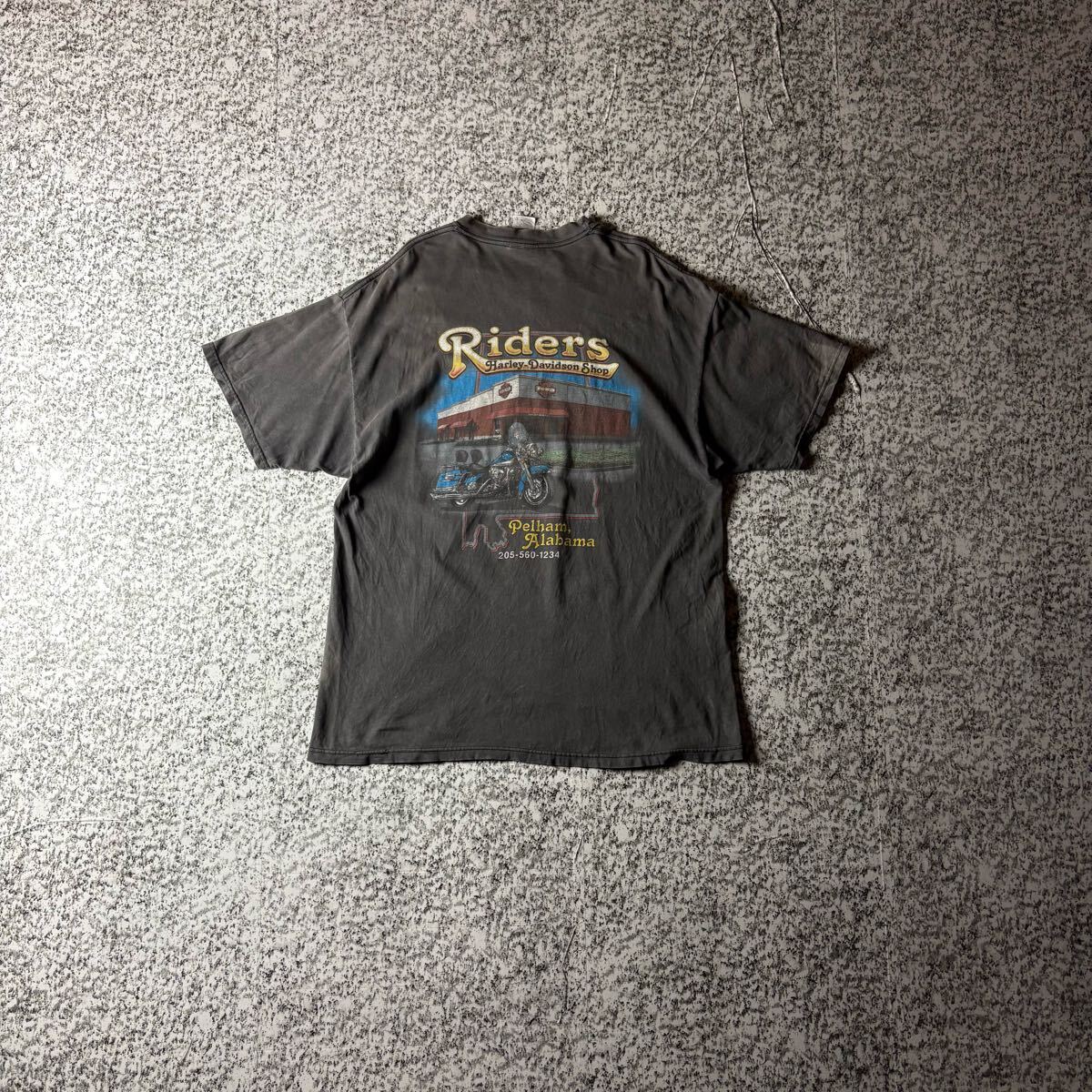 【00s鬼フェード】ハーレーダビッドソン スミ黒 サンフェードTシャツ USA製 チャーコールグレー XLサイズ 古着 雰囲気抜群