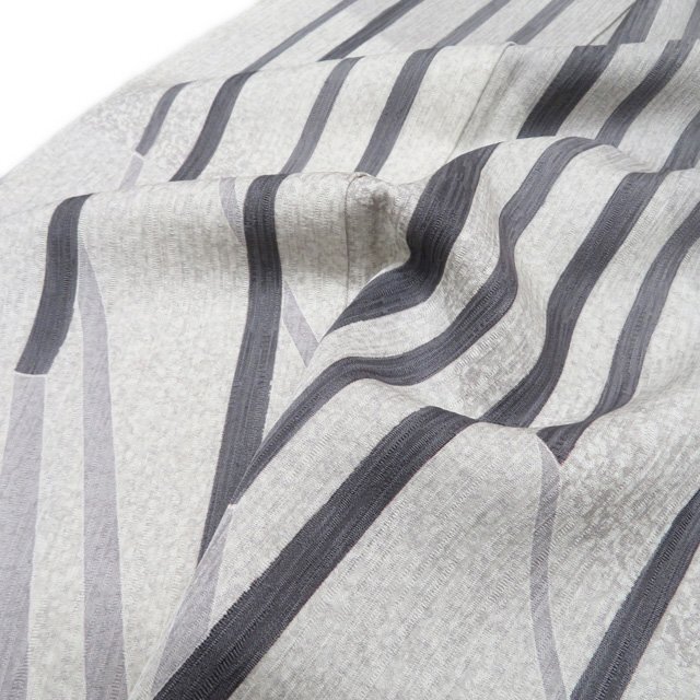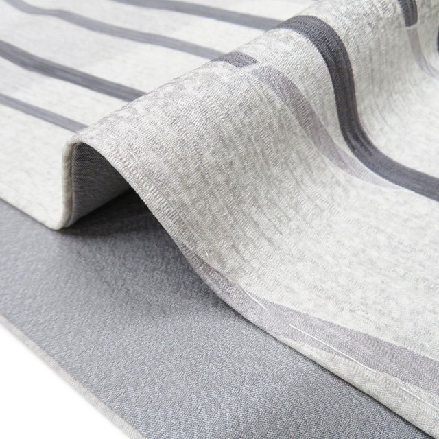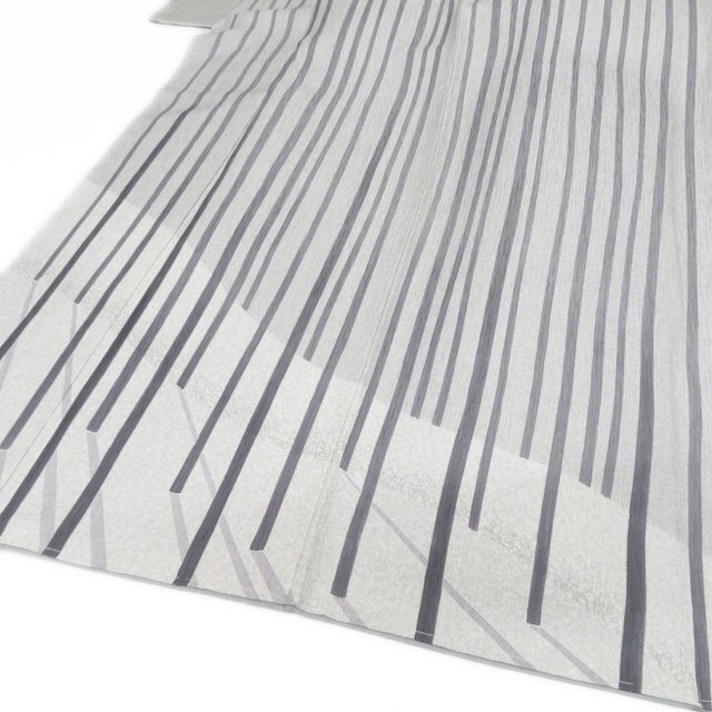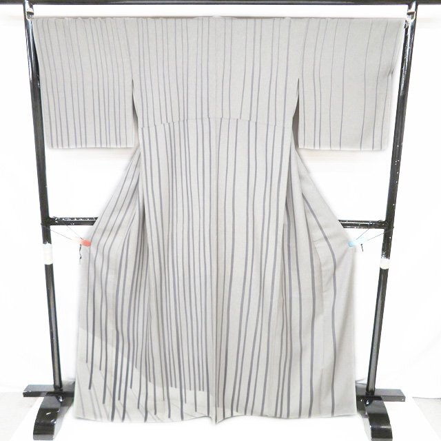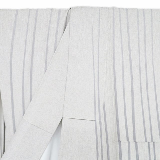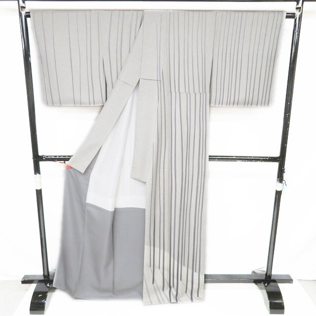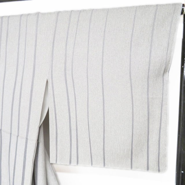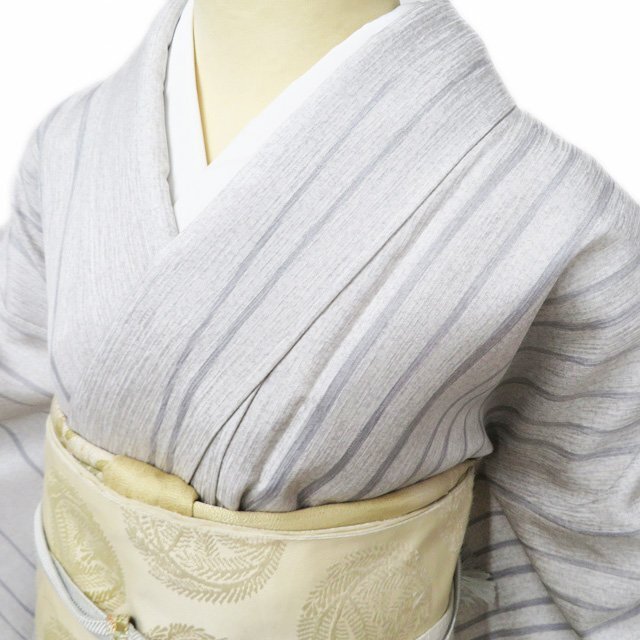 丈168cm(+9) 裄68cm(+1) 袖丈48cm(+5.5) 前幅24cm 後幅29.5cm ※サイズのお直し、承ります。 (身丈のみ、身幅のみのお直しは承っておりません) ※身丈は肩から測っております。 ※()内の数字はお直しで直せる長さを示しています。お仕立て直しの場合は胴裏を付け替えるため、さらに長く直せる場合があります。詳しくはお問い合わせください。 単位:cm 素材 正絹 商品ランク A ●着用時期 10月~5月(+-2週間) ●着用シーン 披露宴、パーティー、お出掛け、式典など ●お色 絹鼠色 鼠色 繊細な縞文様に陰影を加え、まるで竹林に差し込む光のような奥行きを演出した意匠。 モダンで洗練された表情を持ち、すっきりとした着姿を引き立てます。 是非お手元にお迎えくださいませ。 未使用の美しいお品物です。 写真に写っている着物のみの販売で、帯等の付属品はついておりません。 一部商品は実店舗・他サイトでも並行して販売しておりますので売り切れの際はご了承ください。 その他多数販売中 oya | ||||||