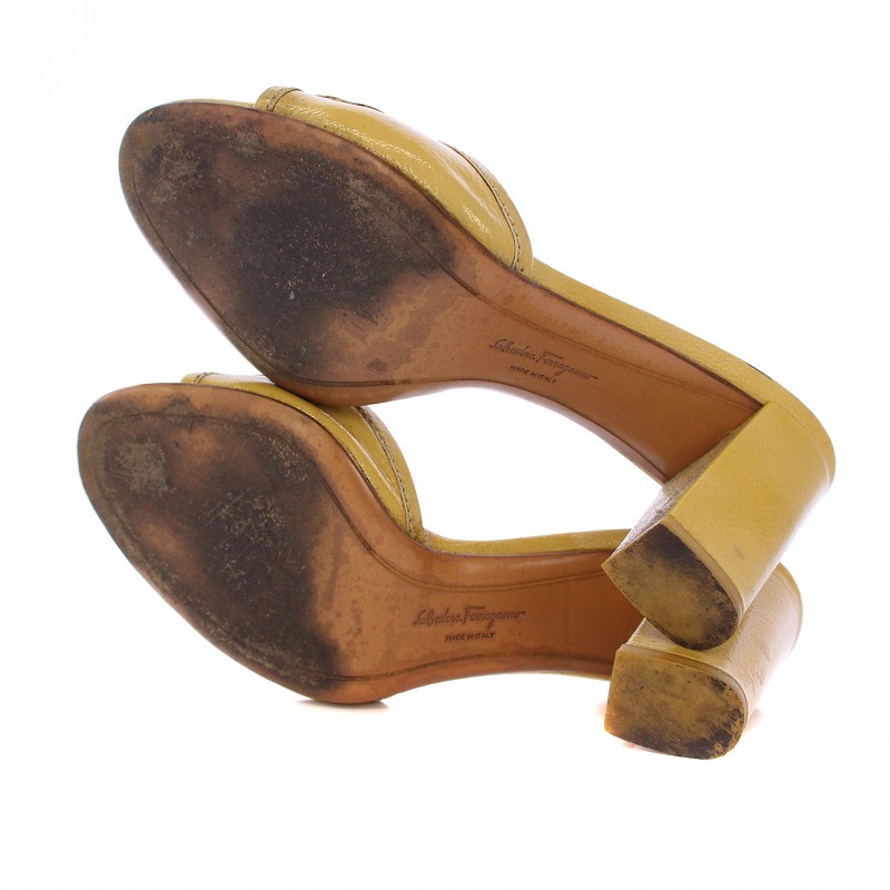 サルヴァトーレフェラガモ Salvatore Ferragamo ミュール サンダル チャンキーヒール レザー 7 C 黄 /BM レディース
