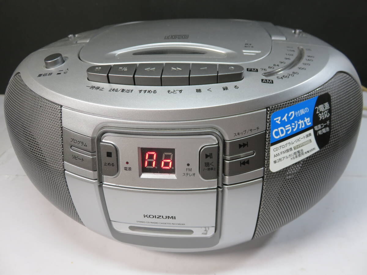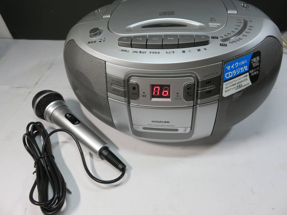 美品■「コイズミ CDステレオラジカセ 」 AM/FM ワイドFM対応 マイク付属 シルバー SAD-4943/S