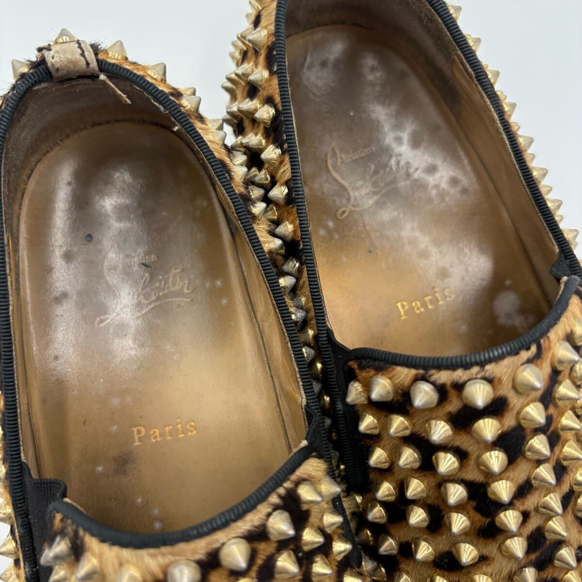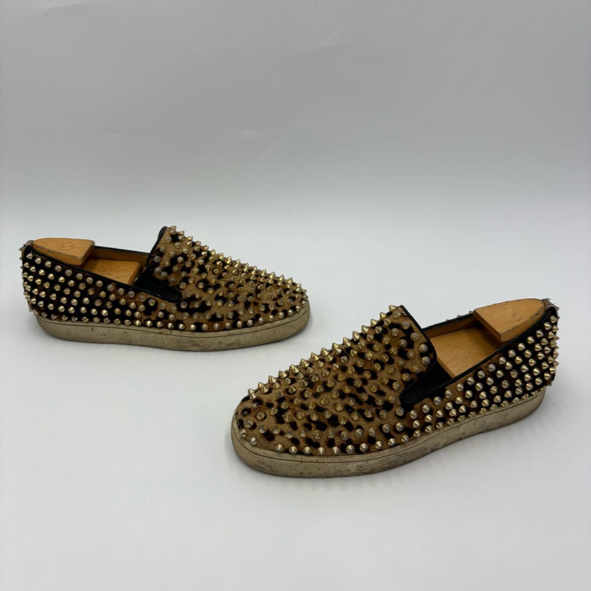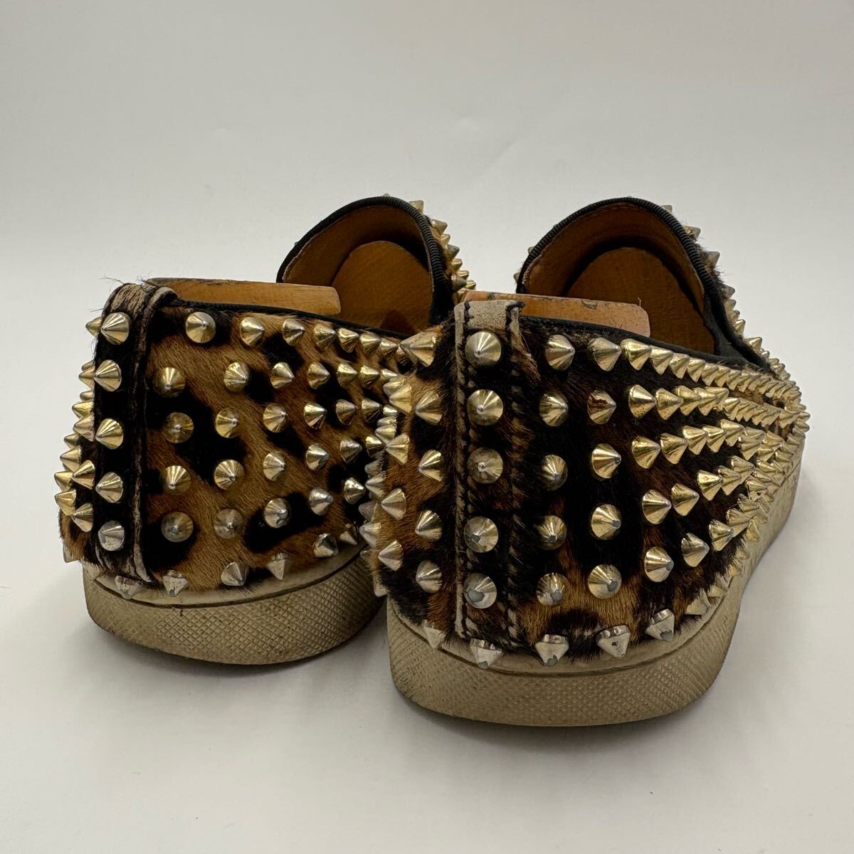 H ■ 高級感溢れる!! '名作 スタッズ装飾デザイン' Christian Louboutin クリスチャンルブタン ハラコ スリッポン スニーカー 40 25.5cm