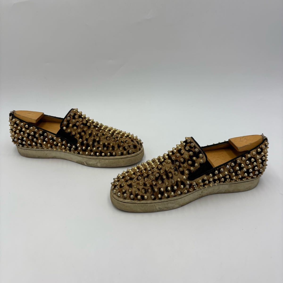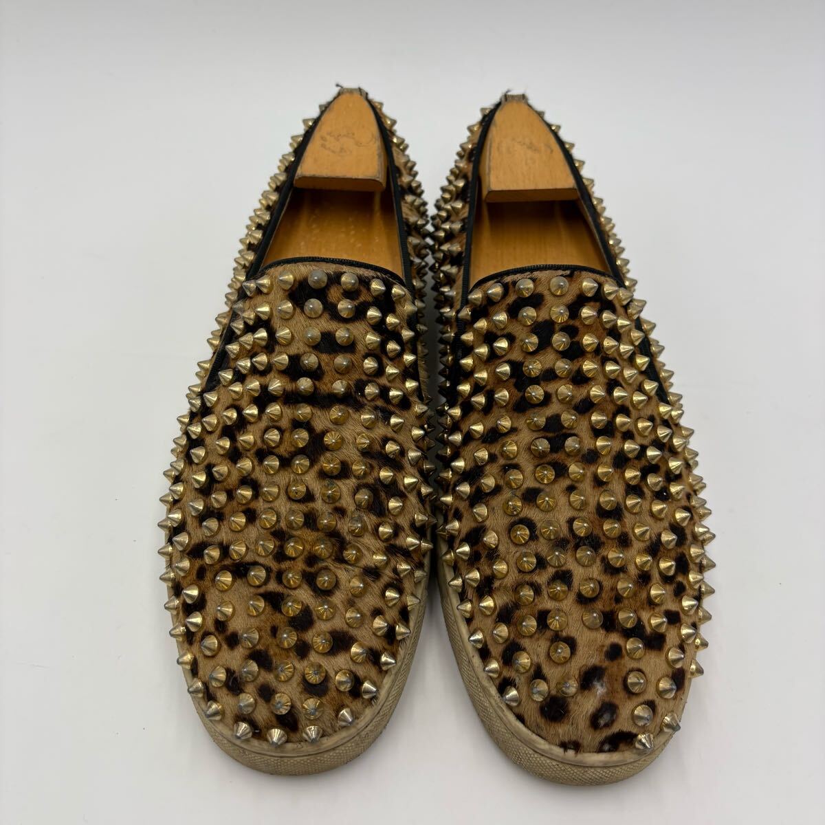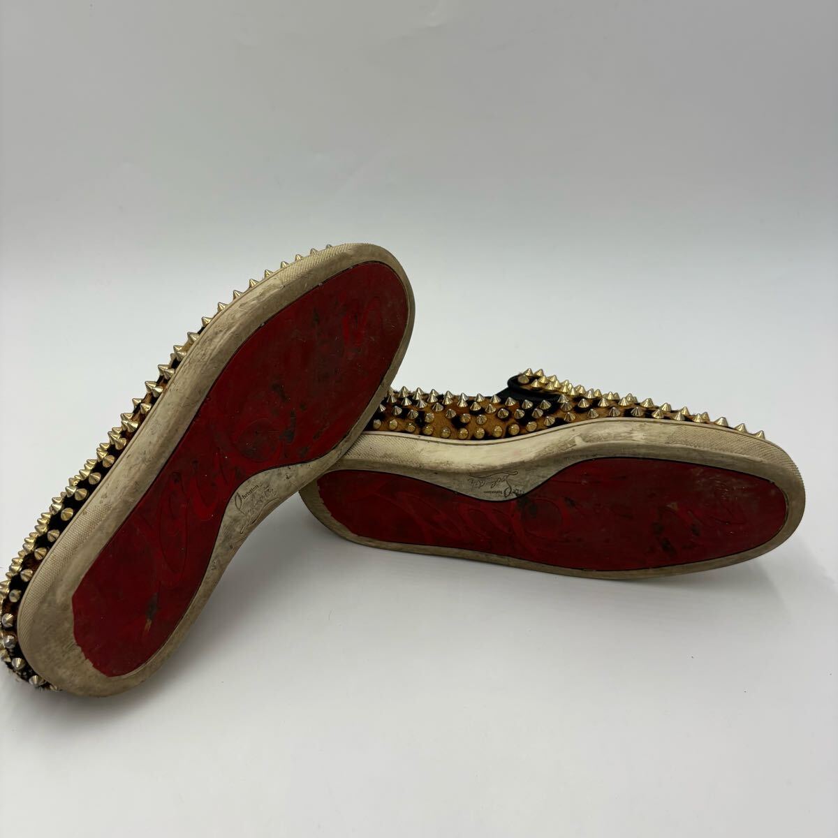 H ■ 高級感溢れる!! '名作 スタッズ装飾デザイン' Christian Louboutin クリスチャンルブタン ハラコ スリッポン スニーカー 40 25.5cm