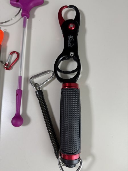 「滑りにくく、使いやすい」アルミ製フィッシュグリップは濡れた状態でもしっかり掴める滑り止めグリップ、女性にも片手で簡単に操作できて、ほんの少しの力片手で約18㎏までの揺れ動く魚を掴めます。