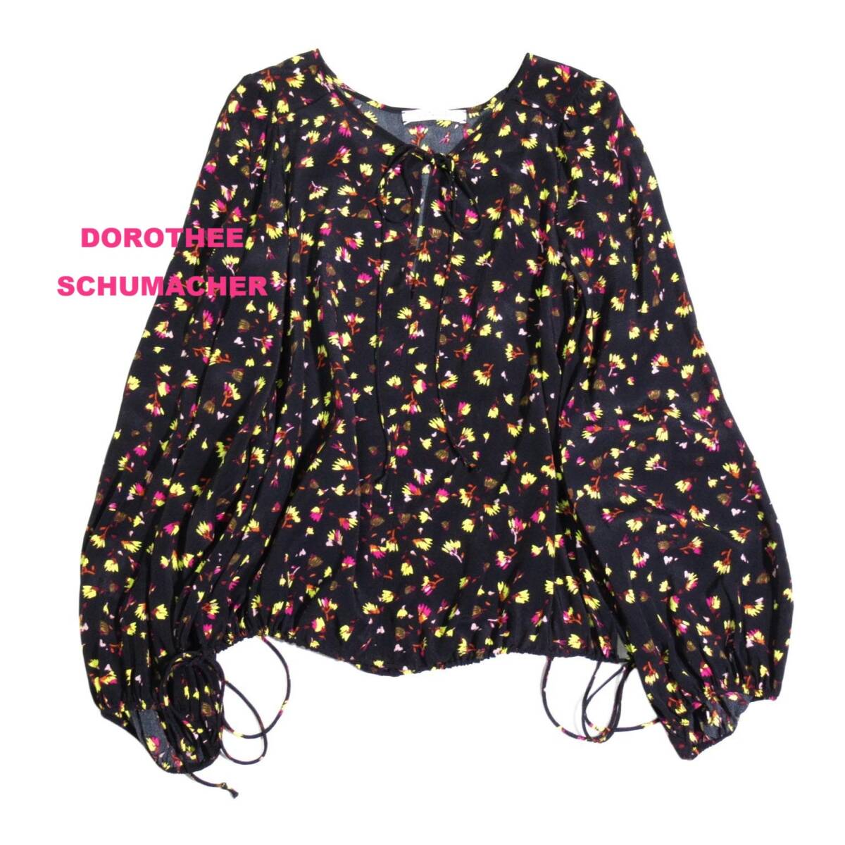 ドロシーシューマッハ トップス サイズ: 2 お色: ブラック、柄 素材: ビスコース60 シルク40% 平置き実寸で 肩幅36 身幅48 着丈53 袖丈61cm位です。 |