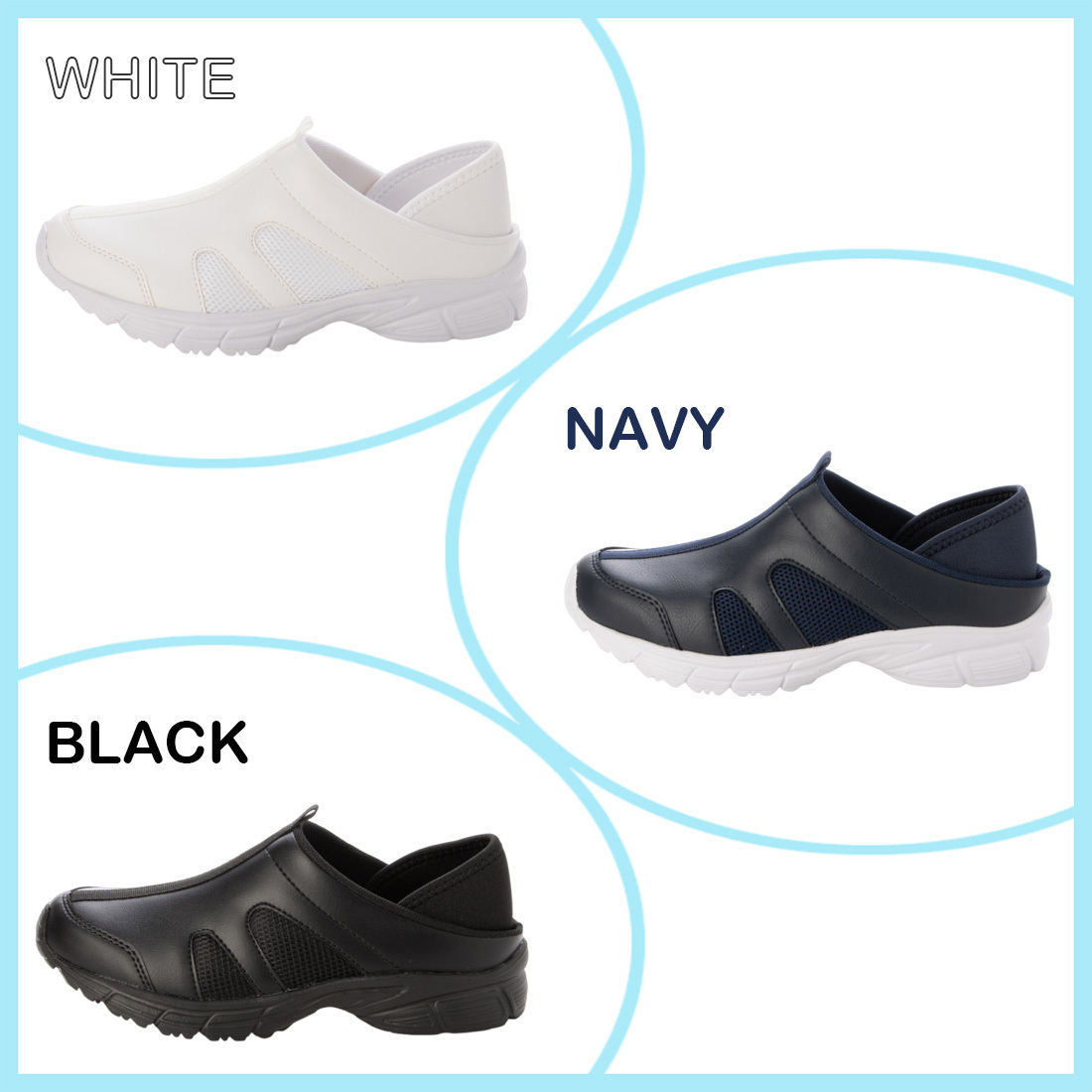 履き口のパイピングで足首をやさしく保護し、脱ぎ履きがしやすく、医療・介護・オフィスなど、仕事の現場で大活躍する1足です。