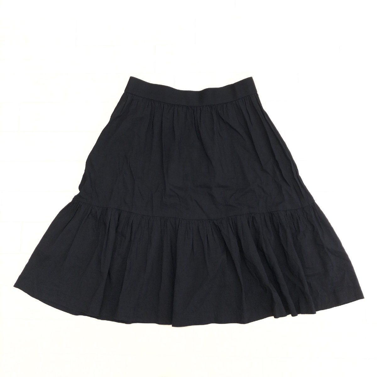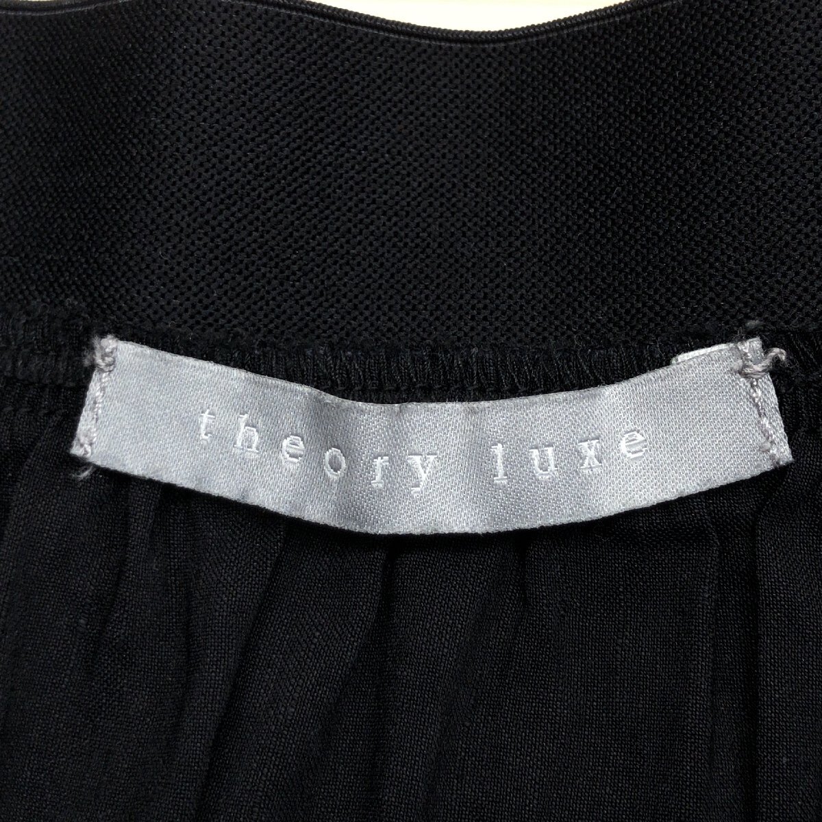 美品 Theory luxe セオリーリュクス 麻 リネン ストレッチ ティアードスカート 38(M) 黒 ブラック ミディ丈 ギャザースカート レディース