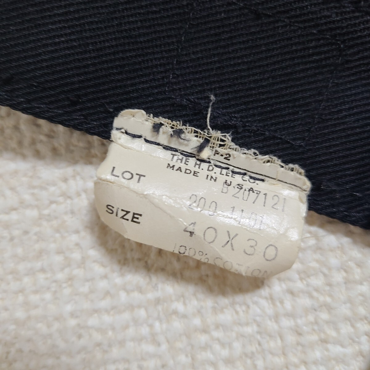 今回出品させて頂きました商品は70'sのLeeリーで品番は移行期初期サイド黒タグ付きの200ー1011、MADE IN USA製、素材はCOTTON100%のカツラギ素材、ZIPはTALON、後身、左ポケットにユニオンチケット付き、カラーは激レアなブラックになります。状態もウエスト部分にボタンのようなものを縫い付け外した形跡や裾のステッチを外し切りっぱなしのような状態になっておりますが生地自体は水の通っていない一応デッドストックになります。サイズ表記は40×30とウエストが少し大きい感じがするかと思いますがシルエットがキレイですので意外とすんなり履けると思います。COTTON100%の少し地厚な生地になりますので乾燥機をかけていただけれはかなり縮みが出てさらに良い感じに履けると思います。