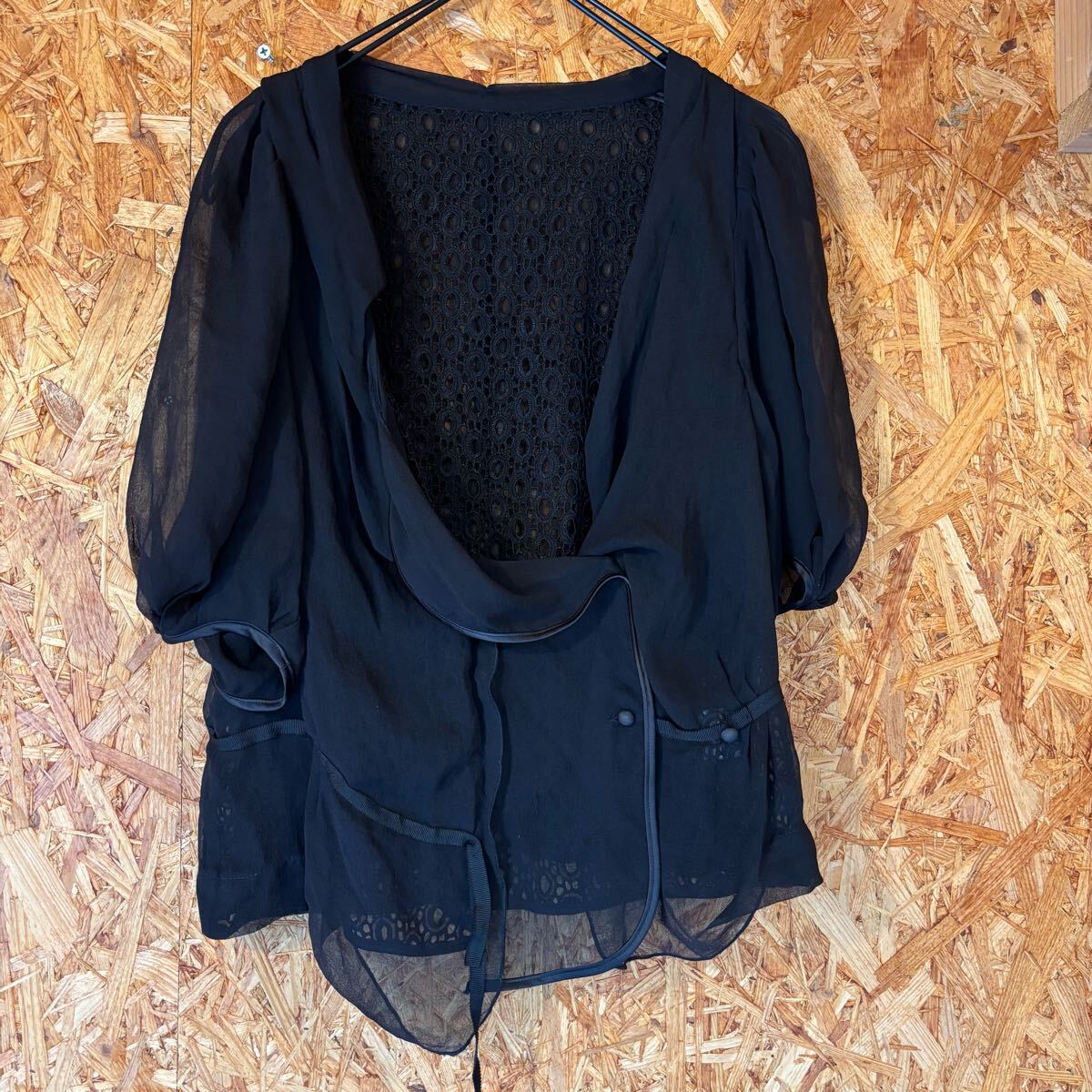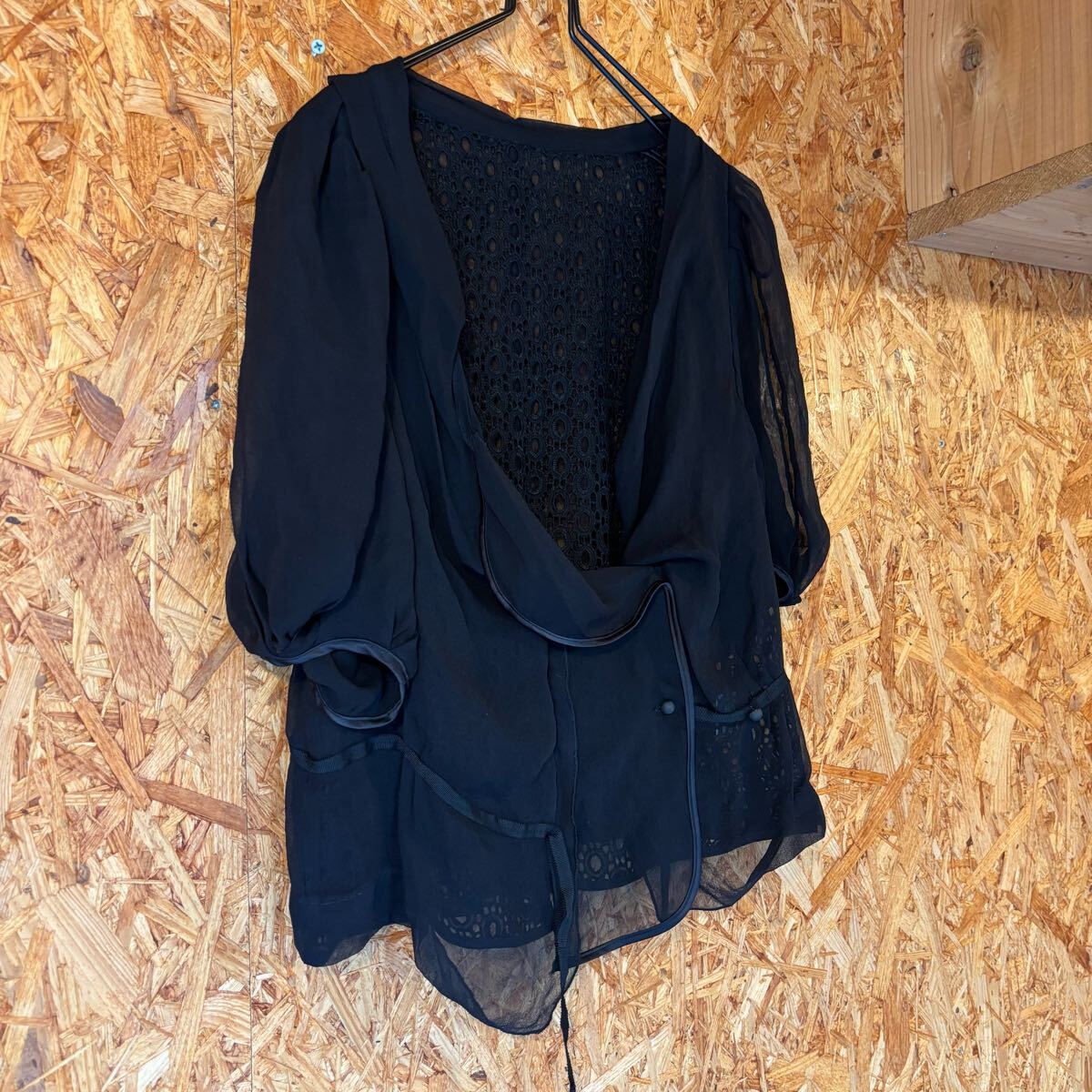 カーディガン シルクカーディガン 半袖 シアー 透け感 ブラック お洒落 レディース トップス 4506