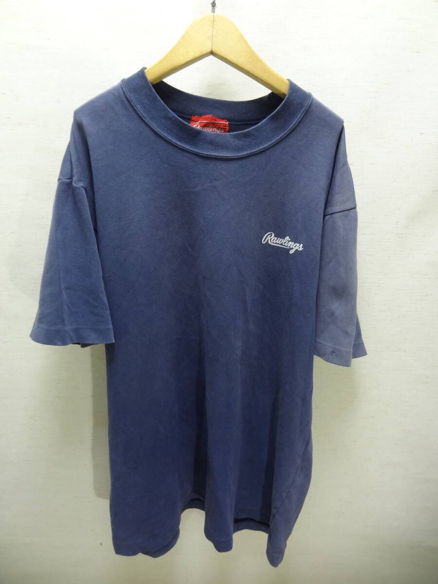 全国送料無料 ローリングス Rawlings アシックス製 メンズ 綿ポリ素材 日本製 野球等トレーニング 半袖 スポーツ 紺 Tシャツ O(XL)サイズ