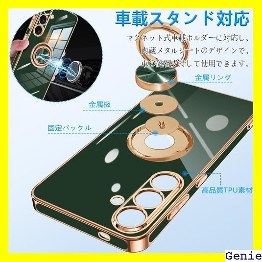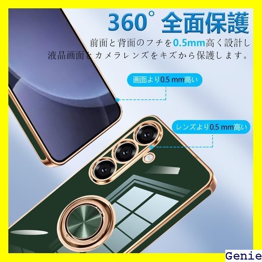Galaxy S25 ケース リング ギャラクシーs2 スタンド機能付き 360回転車載ホルダー ダークグリーン 116