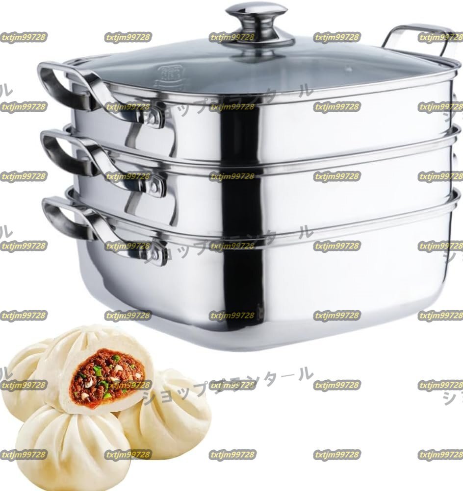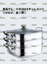 蒸鍋 蒸しもの鍋 蒸し鍋 3段 蒸し器 深型 ガラス鍋蓋付 ステンレス 樹脂加工 IH対応 各種熱源対応 (304ステンレス鋼 3段)