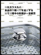 材質:本体/ステンレス鋼、取っ手/フェノール樹脂(耐熱温度150度)、ガラス蓋/強化ガラス(全面物理強化)、蓋金属部/ステンレス鋼、蓋つまみ/フェノール樹脂(耐熱温度150度)。
