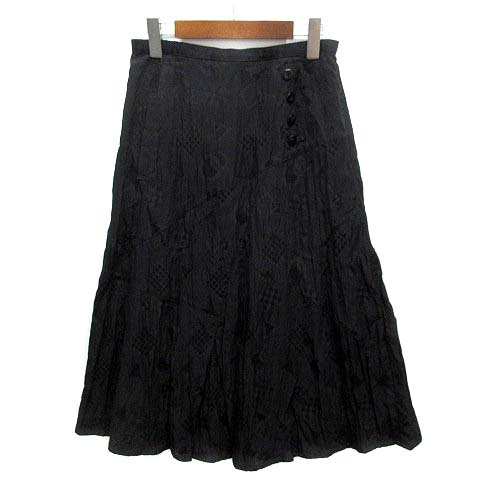 t.b ティービー センソユニコ キュプラ ナイロン ジャガード スカート ミディ丈 ゴムウエスト ブラック 黒 38 日本製 レディース