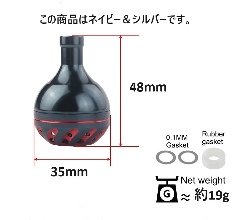 35mmリールパワーハンドルノブ(ネイビー&シルバー)です。