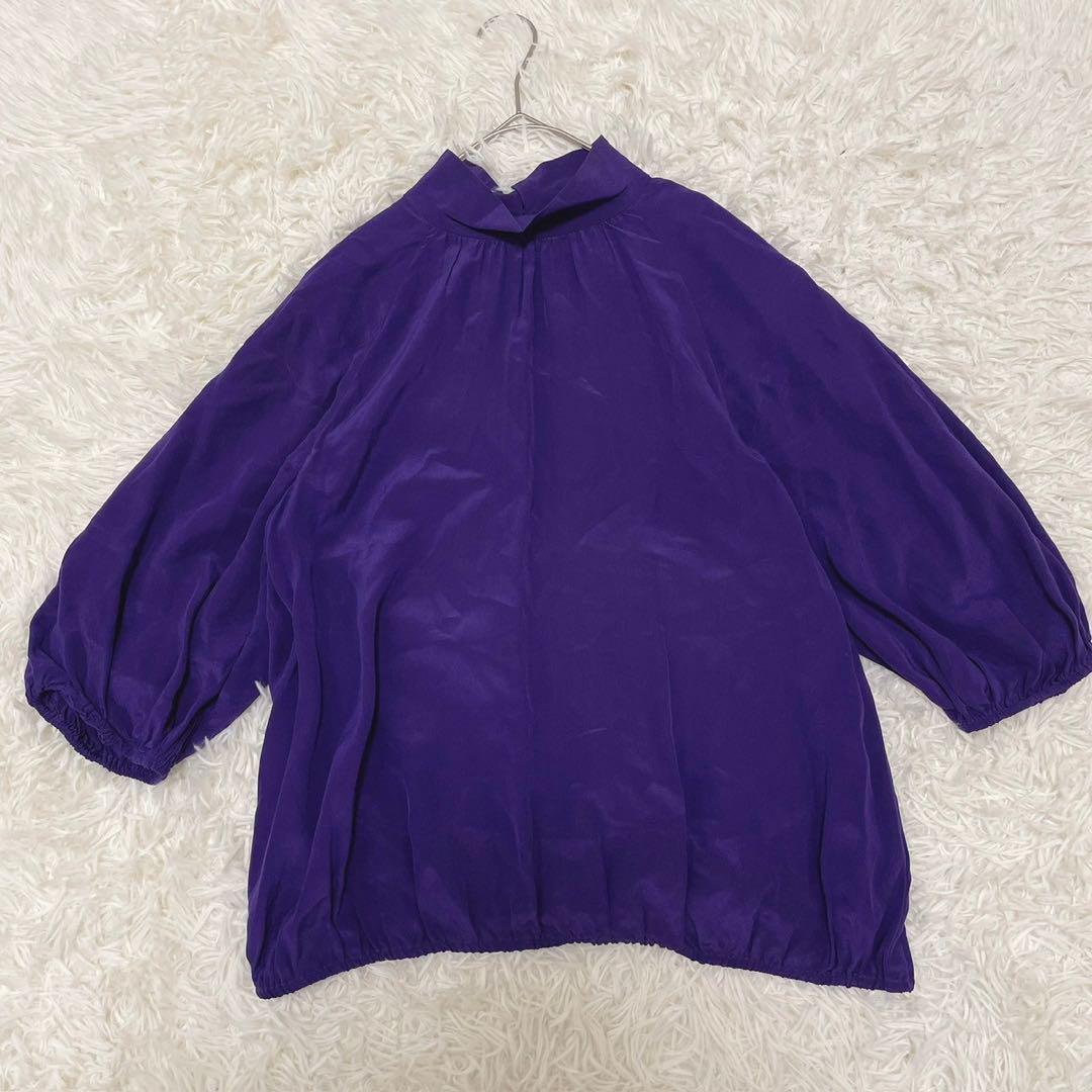 『アルマーニエクスチェンジ』 (M) スモック風7分袖ブラウス 無地 透け感 紫