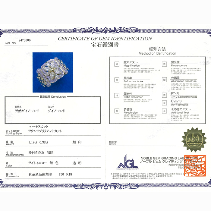 付属品 | 鑑別書 ※写真の物が全てでございます。 |