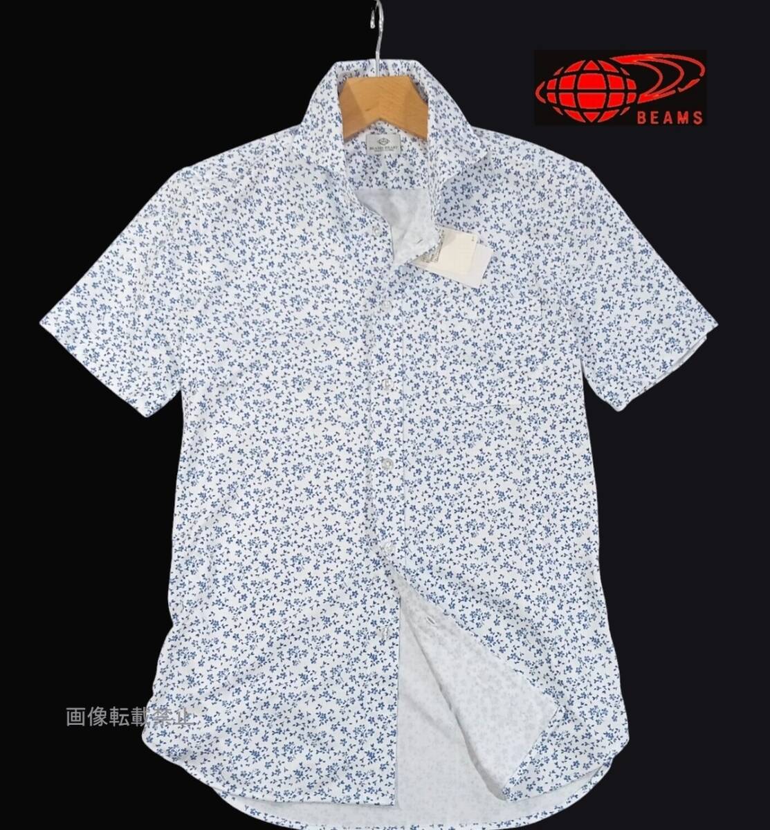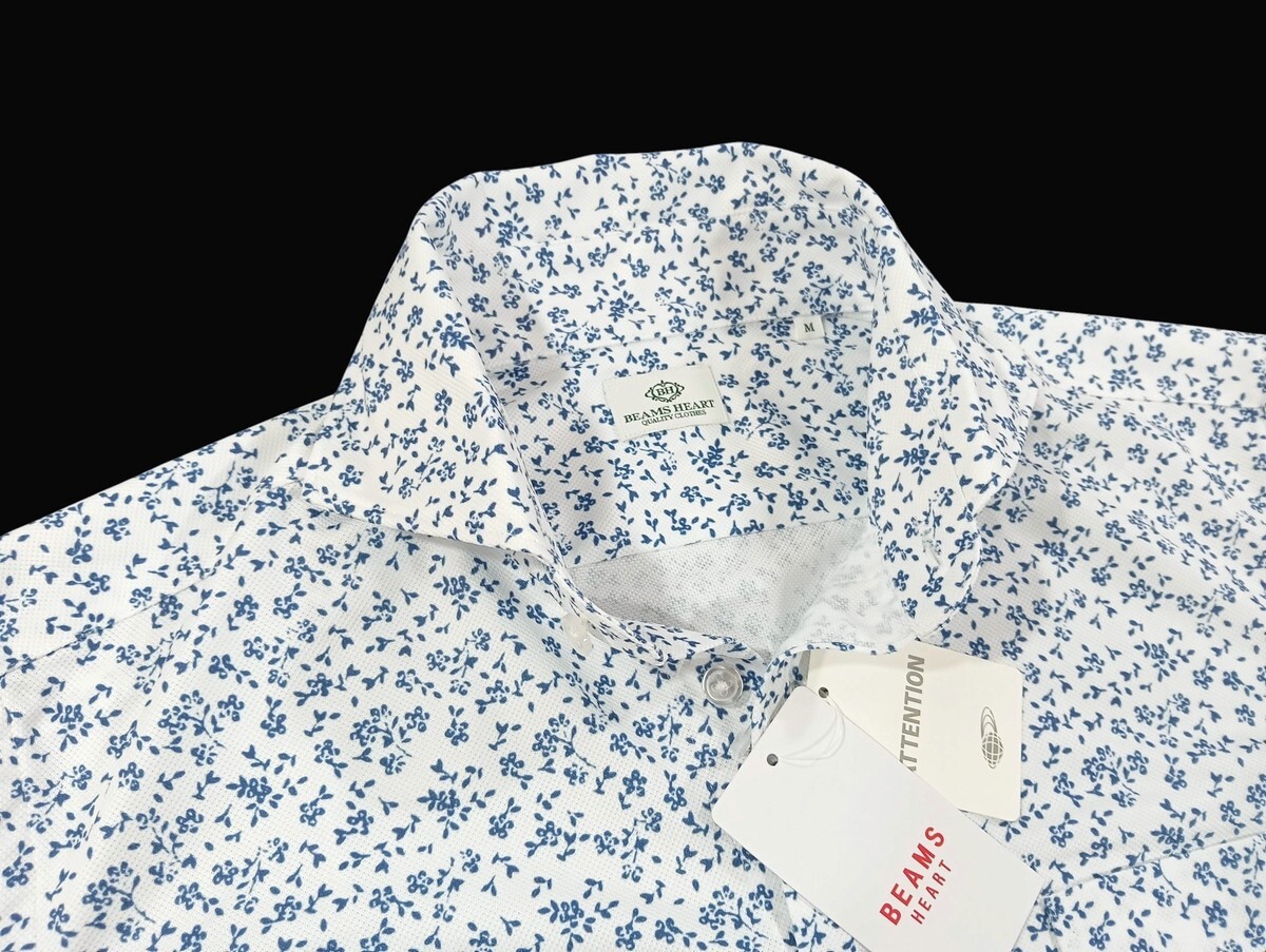 新品 ビームス 清涼感 鹿の子 小花柄 フラワー 半袖シャツ M 花柄 胸ポケ付 カッタウェイ ドレスカジュアル BEAMS HEART メンズ