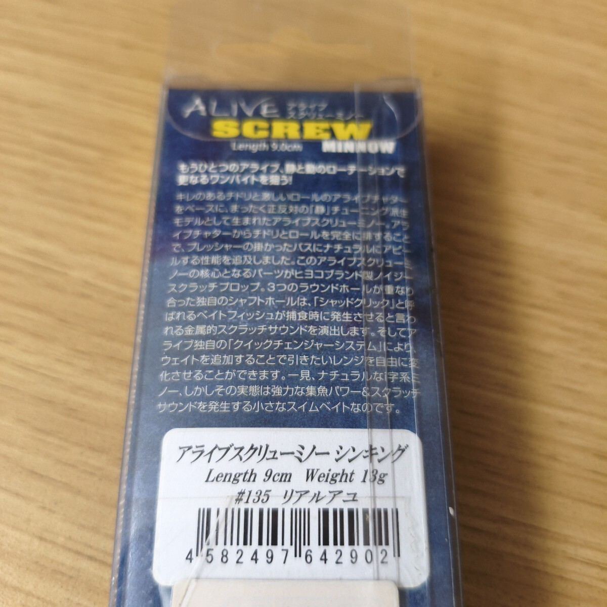 イマカツ 未使用品ALIVE SCREW MINNOW/アライブスクリューミノー シンキング 135 リアルアユ 13g