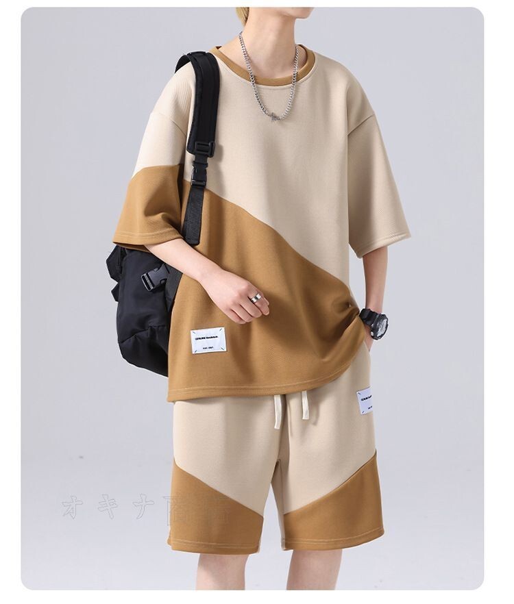 半袖 セットアップ メンズ ジャージ 上下セット 配色 切り替え tシャツ セット 夏 夏服 カジュアル スポーツウェア ルームウェア
