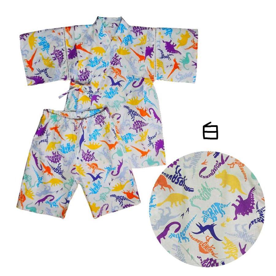 ☆新品未使用☆ キッズ 白 130 甚平 子供用 男の子 じんべい 2点セット 91000 恐竜柄 綿100% 中国製
