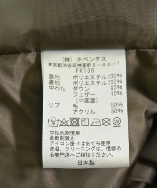 | (表地、裏地)ポリエステル100%、(中綿)ダウン90%、フェザー10%、(リブ)毛50%、アクリル50% |