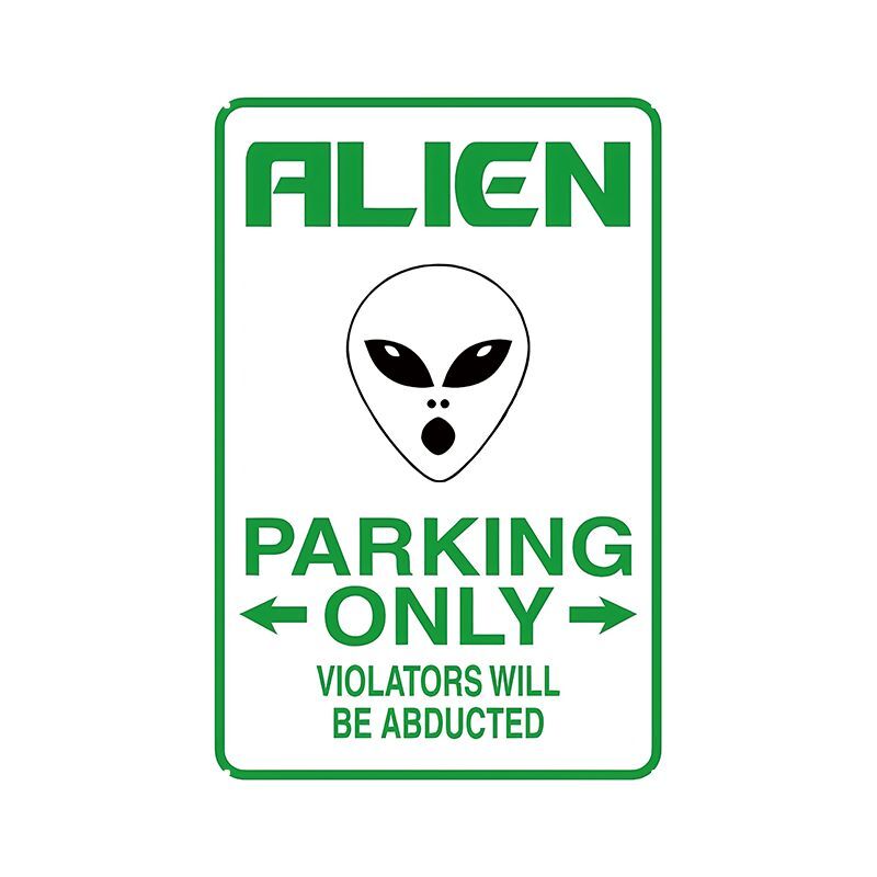「ALIEN PARKING ONLY(宇宙人専用駐車場)」デザインのブリキ看板。