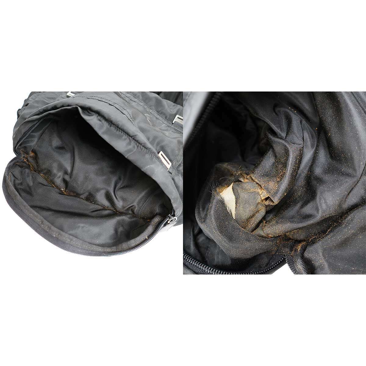 上部ポケット内に中綿スポンジの飛び出し(画像8枚目右)、金属パーツにくすみ、腰ベルト縫い目に若干のほつれがある他、全体的に汚れ・使用感がございます。