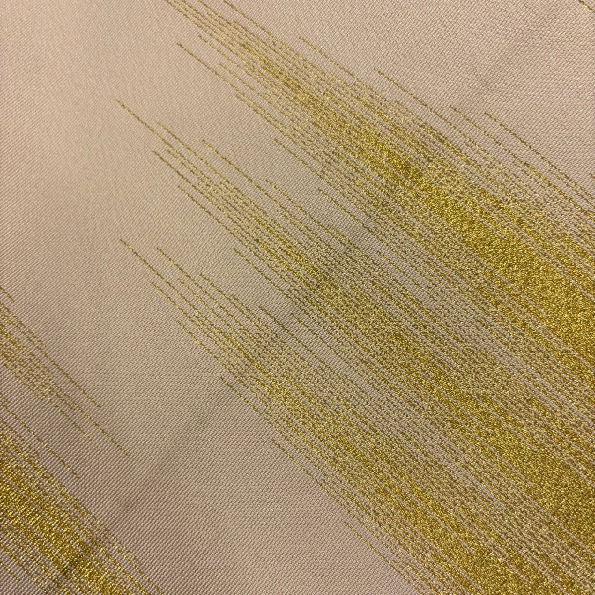 中古 名古屋帯 正絹(金銀糸除く) ピンクベージュ系 くすみカラー ゴールド かがり仕立て 和装 呉服 和服 きもの レディース 女性