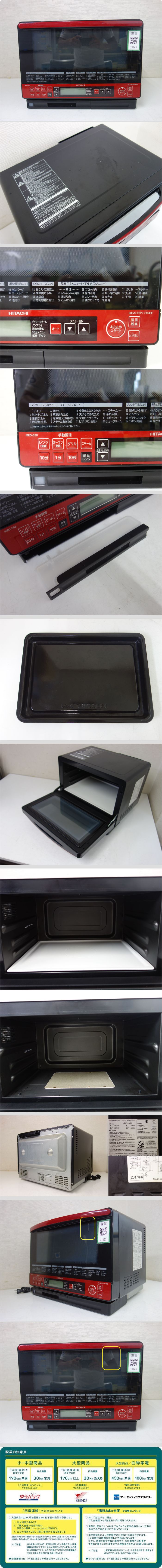 【中古】M▽日立 スチームオーブン 2017年 ヘルシーシェフ タンク式 庫内フラット 容量31L レッド MRO-SS8 (27863)